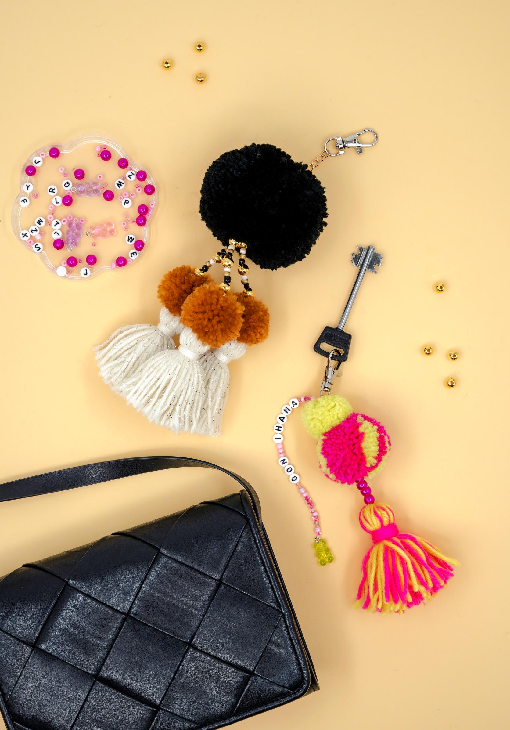 Craft these playful bag charms with just a few yarn tassels and some beads. Will you choose classic shades or bright, cheerful colors?