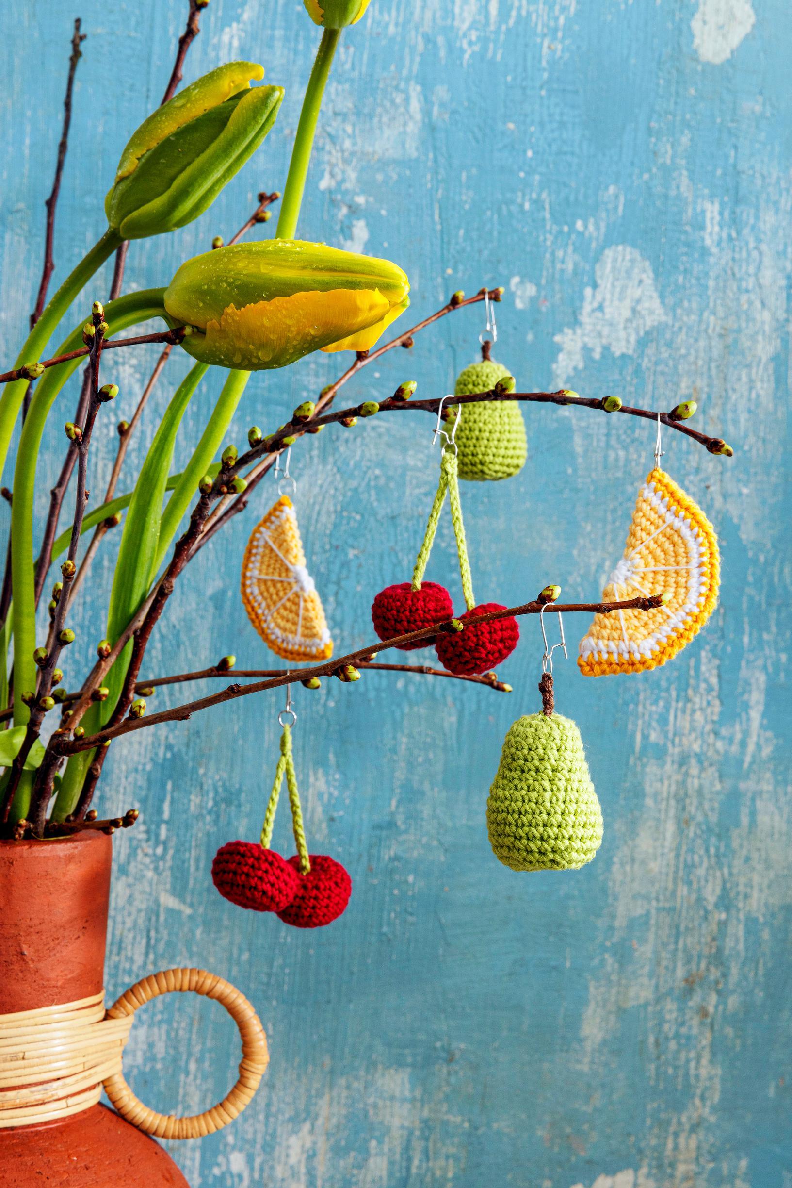 Brighten any outfit with crocheted fruit earrings made from cotton yarn. They’re quick to make and a fun surprise for a friend. Which will you make first: lemons, cherries, or pears?