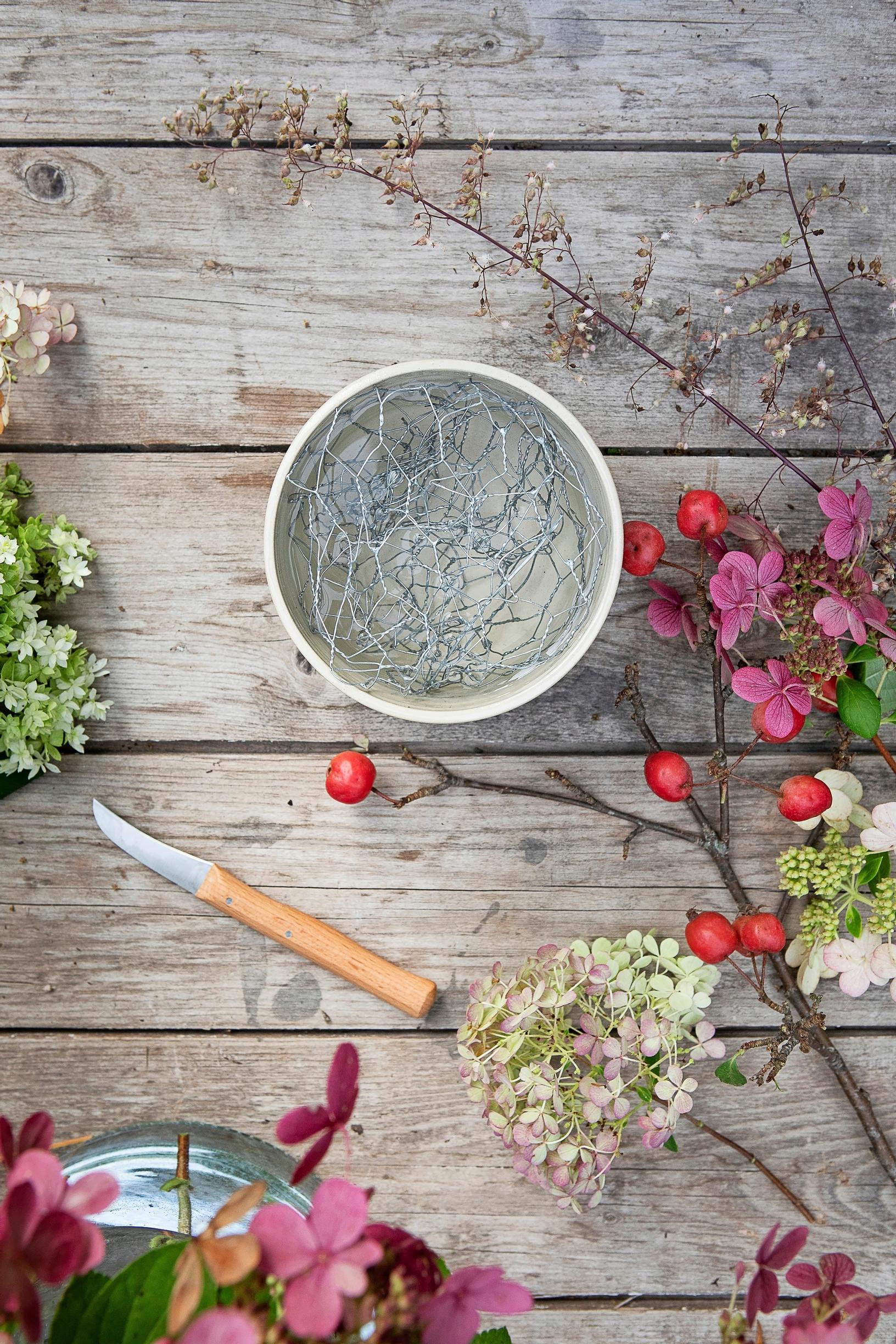 Use a piece of chicken wire—here’s how to create this summer’s loveliest hydrangea arrangement