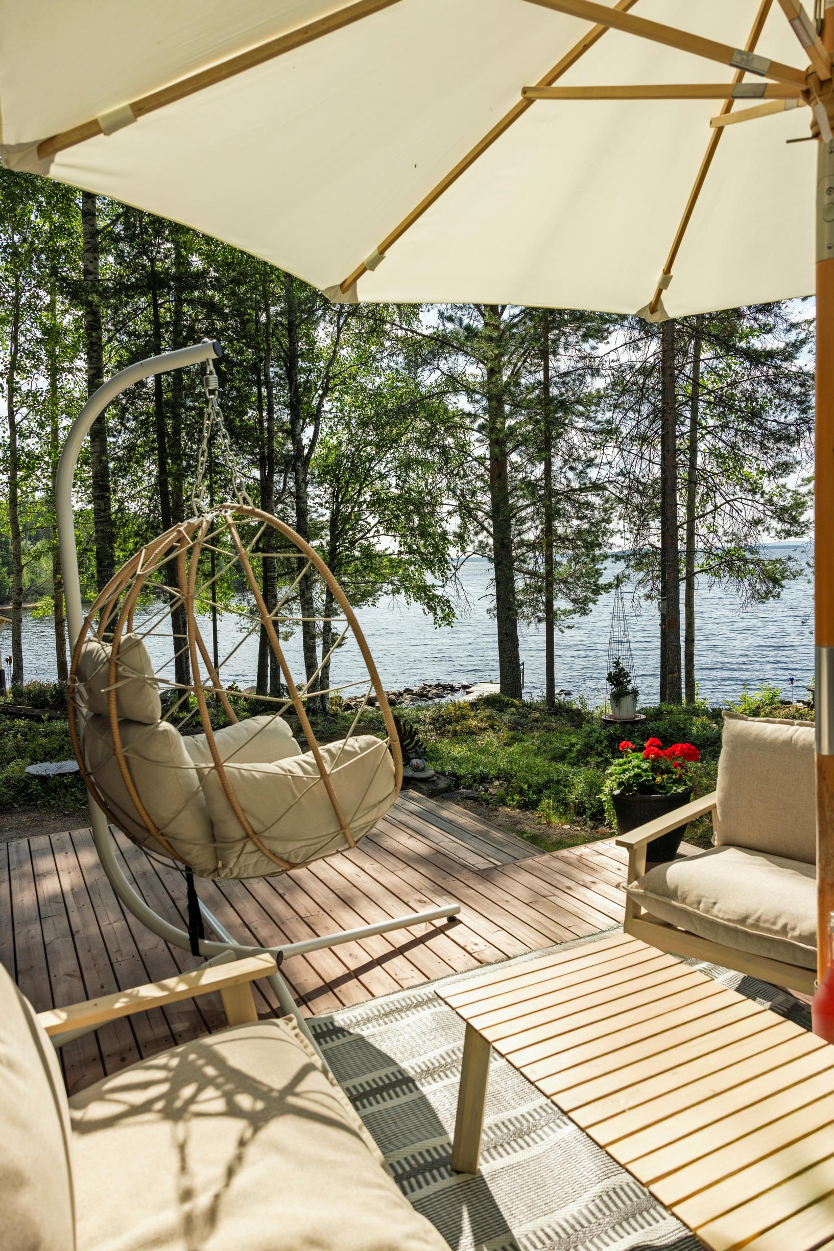 Jaana has thinned and pruned trees extensively, because she feels the open lake view shouldn’t be blocked by anything. She can watch the water’s motion from the deck or the rocking chair for hours. The opposite shore is at least 10 km away, so in fog you can imagine being by the sea.
