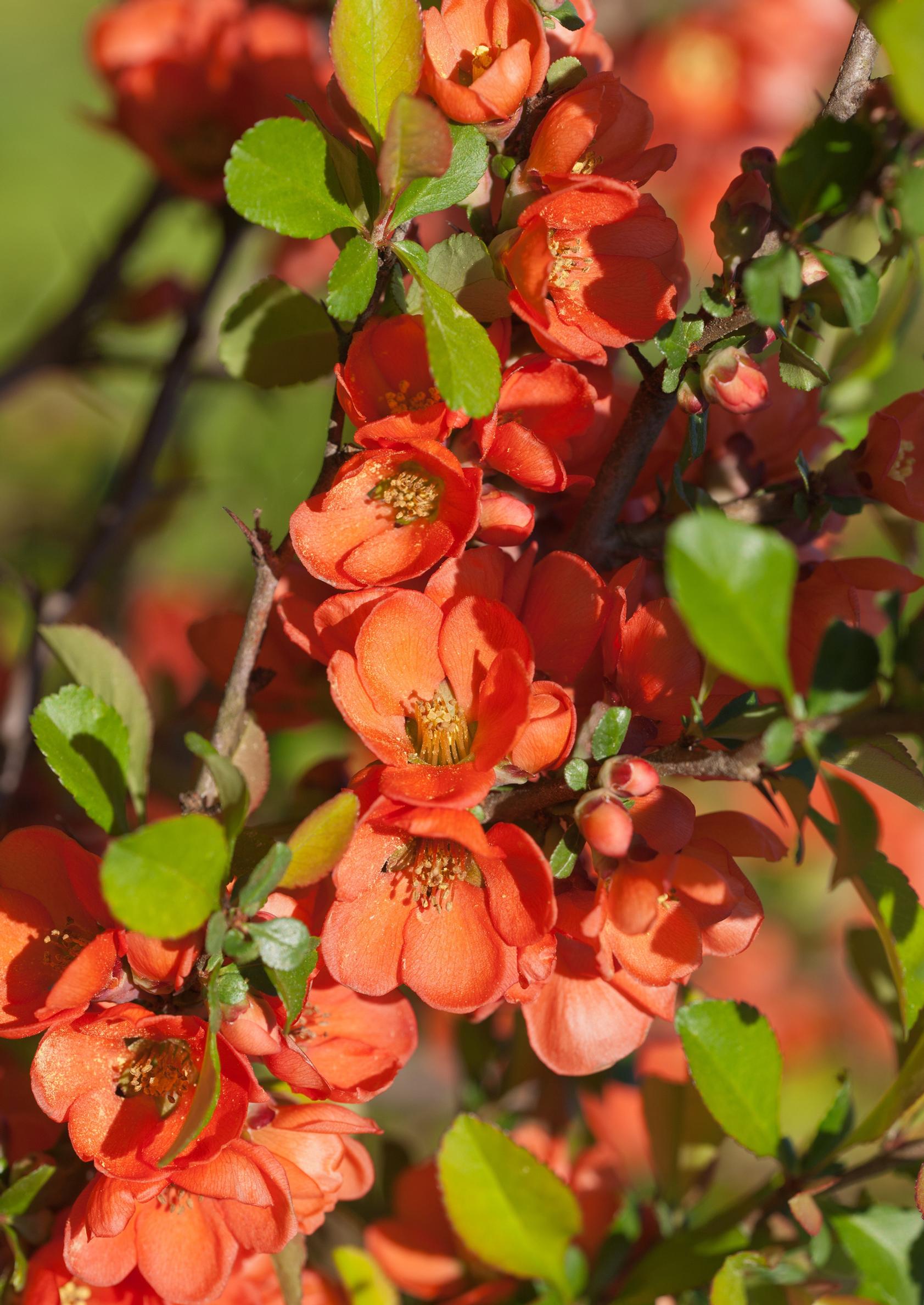 It’s a good idea to plant groups of at least three Japanese quince shrubs to fully showcase their impressive spring bloom.