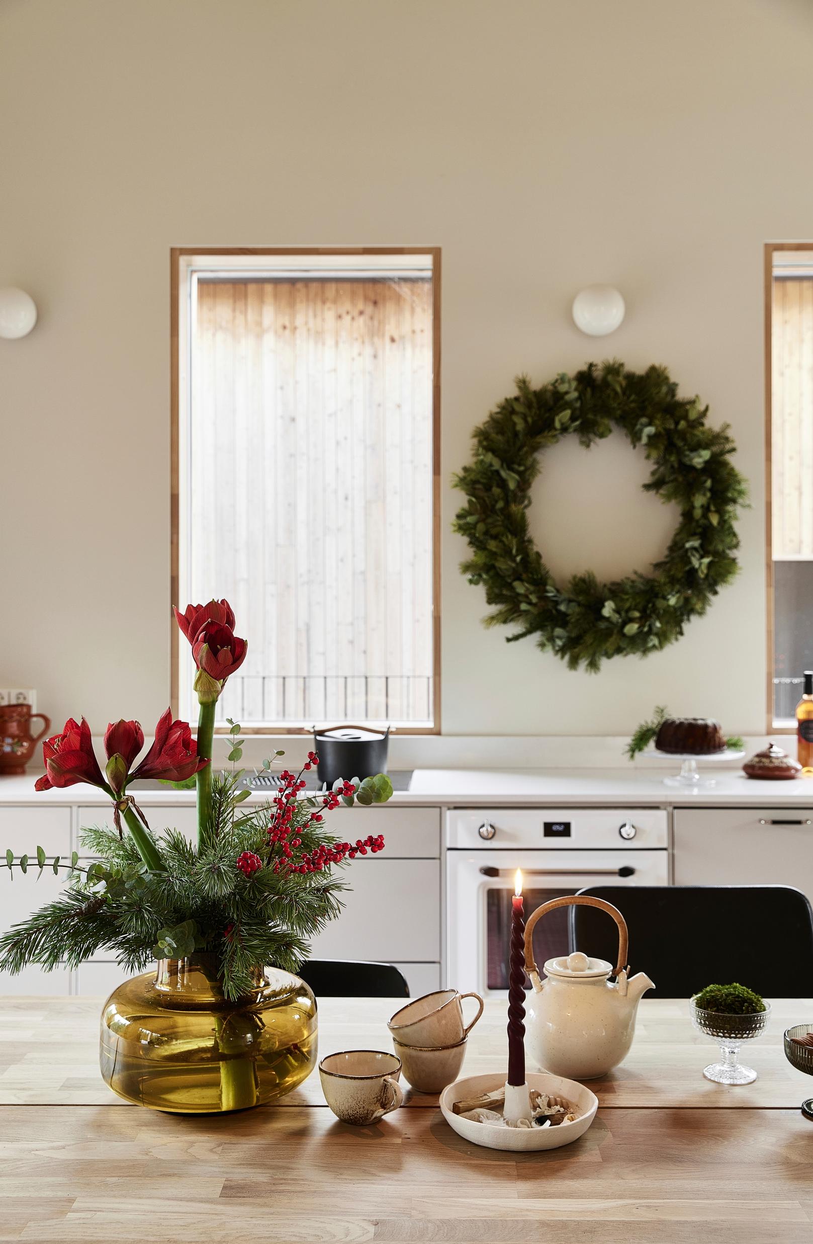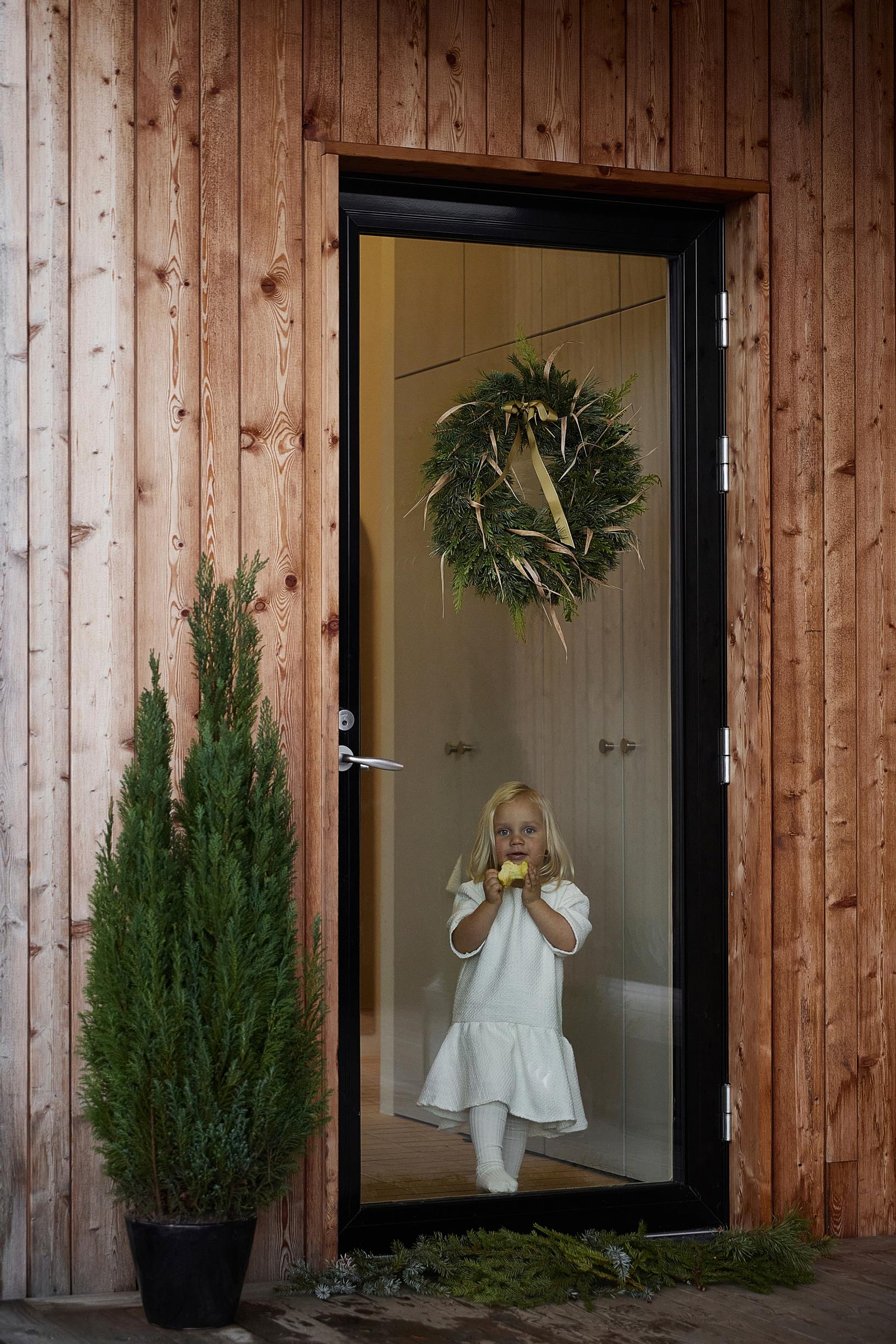 Aurora and Joel’s harmonious home has decor that reflects the tones of surrounding nature even at Christmas, featuring evergreen wreaths and yoga amid the fragrance of mulled wine. “In my opinion lighting is key in creating an atmosphere. Even the children know that we always light a candle at the breakfast table.”