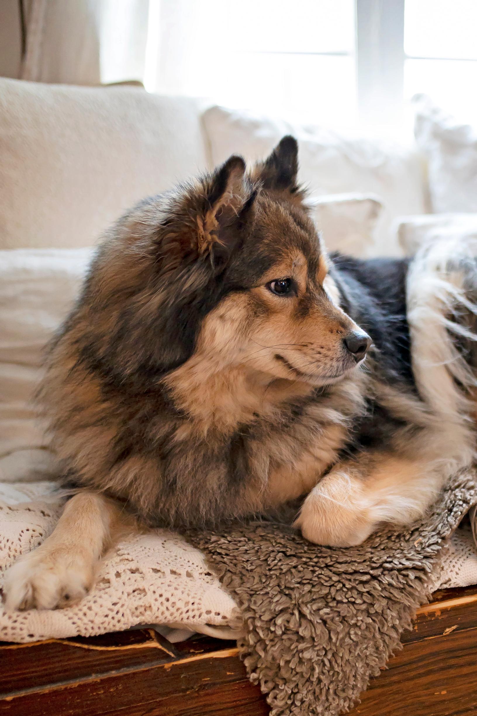 Tytti, the Finnish Lapphund, enjoys snacking on dates at Christmas. In addition, she loves the taste of the quark-based paint on the main room floor. That’s why the owners plan to replace the floor soon.