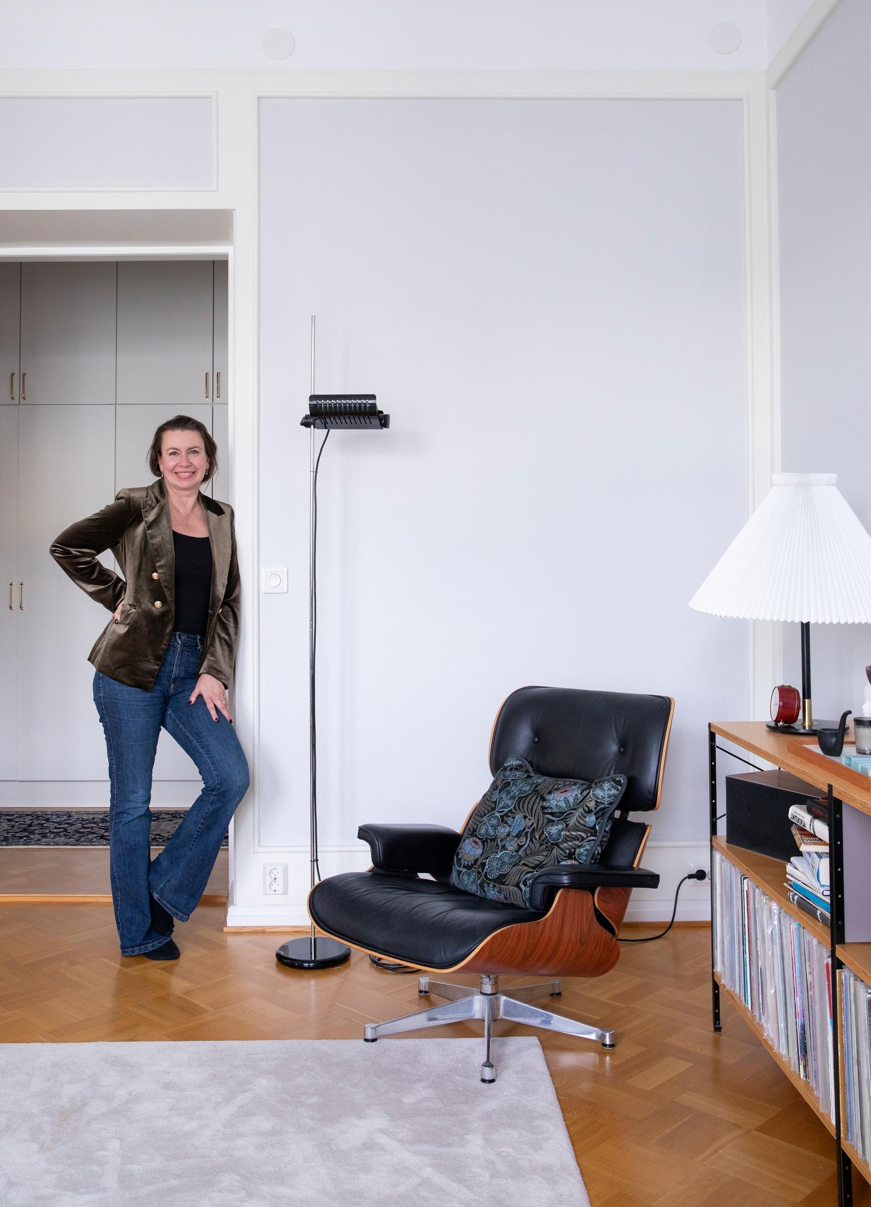 Interior architect Marika Aro is known as an inventive designer with a gift for creating balanced, unique compositions out of furnishings from different styles and eras. The Eames Lounge Chair is a beloved family treasure for Kirsi and Jussi. The floor lamp is the Colombo by Oluce.