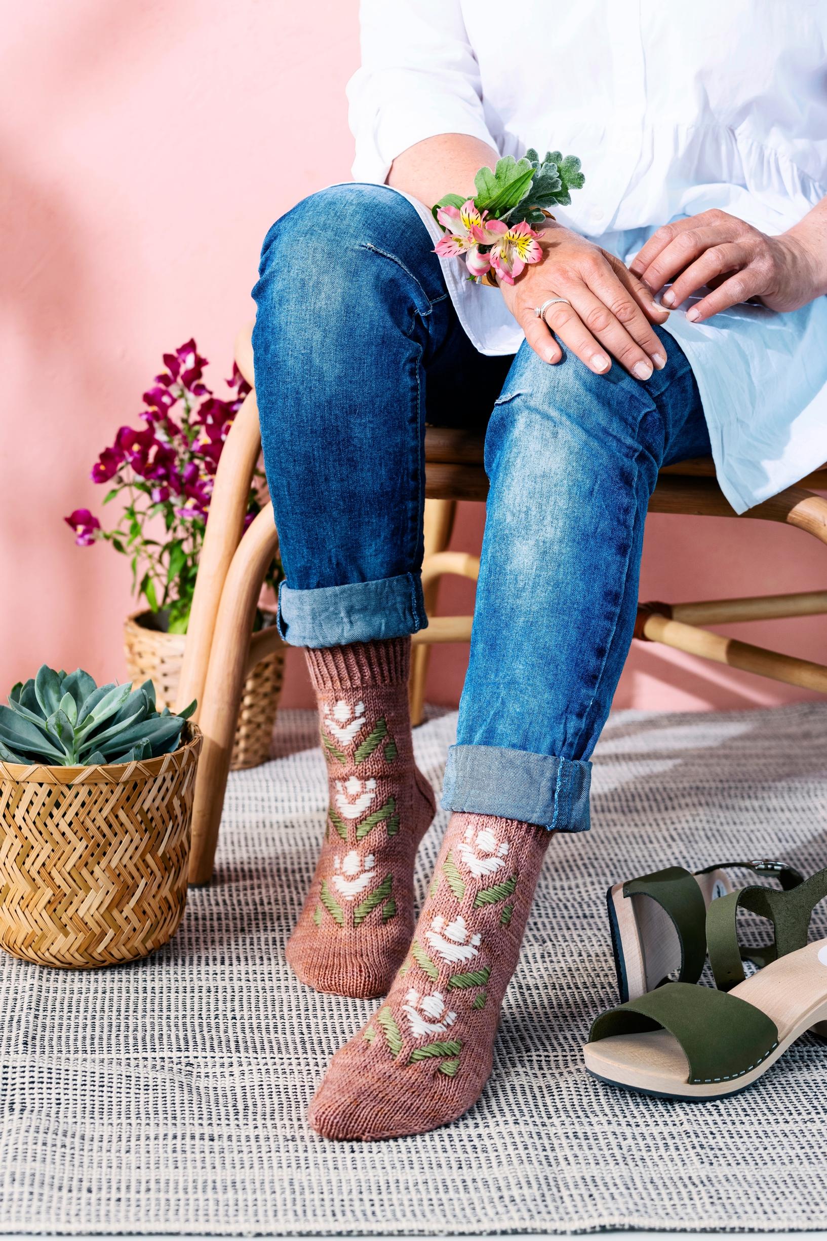 Knit beautiful Rose Garden flower socks with the Estonian roosimine technique!