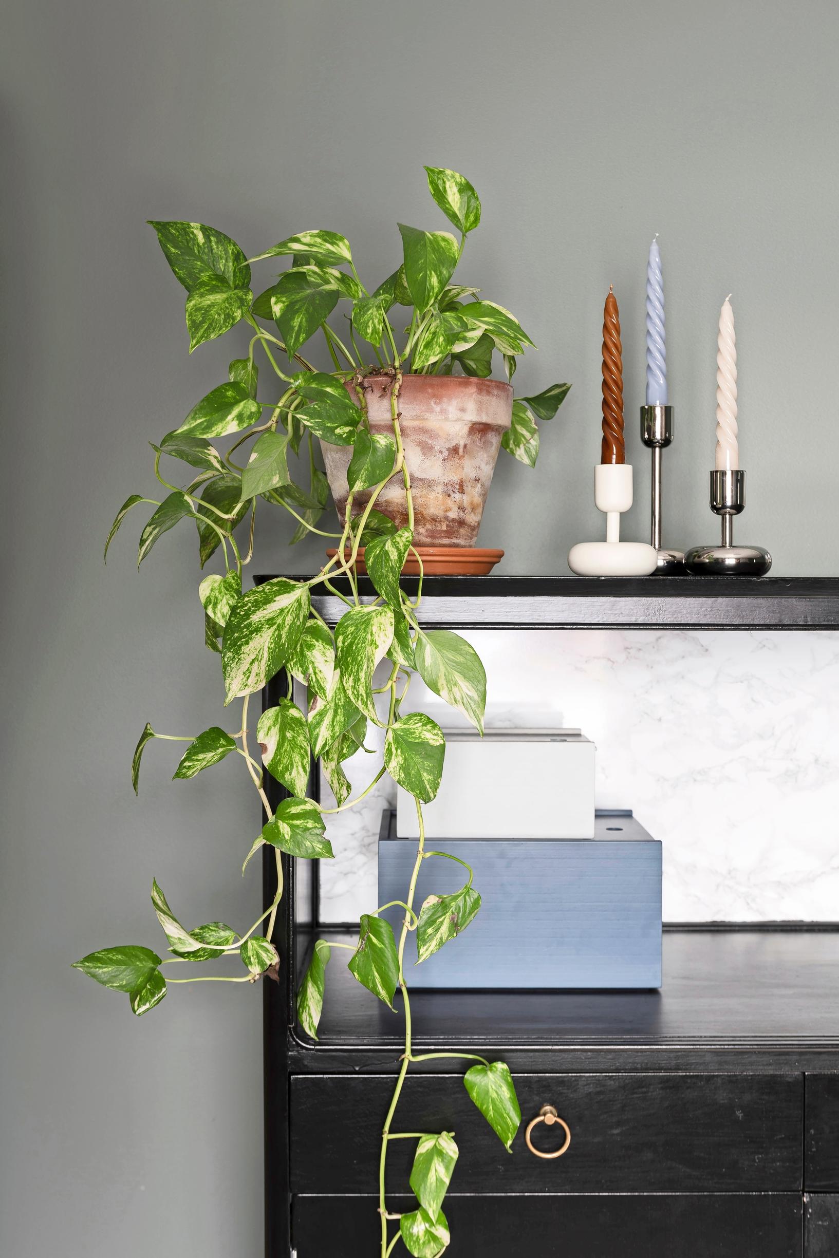 Golden pothos is a popular houseplant in Finland. If Juha’s plant doesn’t look familiar, it’s no wonder—a plant that trails from a hanging pot usually has much smaller leaves, as shown in the photo below.