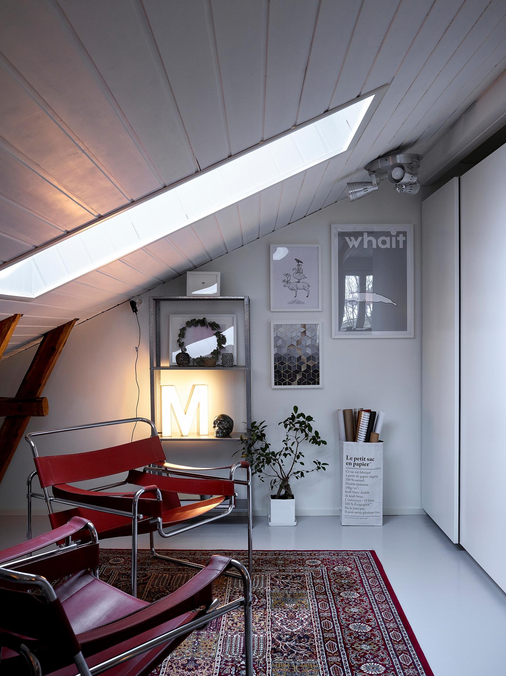 Beneath the old wall covering, they discovered a beautiful log wall full of old nails, which they sanded smooth. They also renewed the electrical wiring, choosing black Bakelite sockets and switches to match the home’s style.