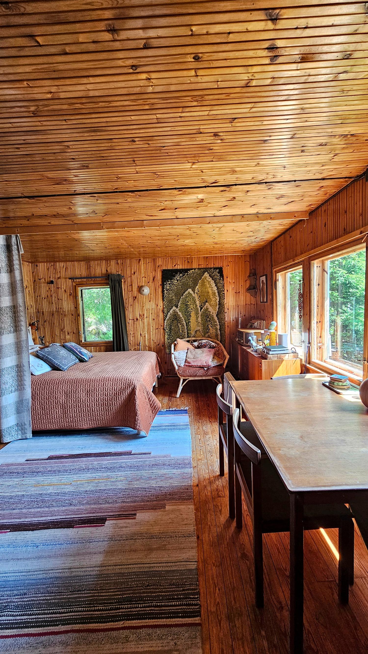 almost everything. There’s never an end to chores at a cottage! The cabin and roof need painting, and the deck needs oiling. Next, we’re updating the outhouse, maybe to an incinerating toilet.