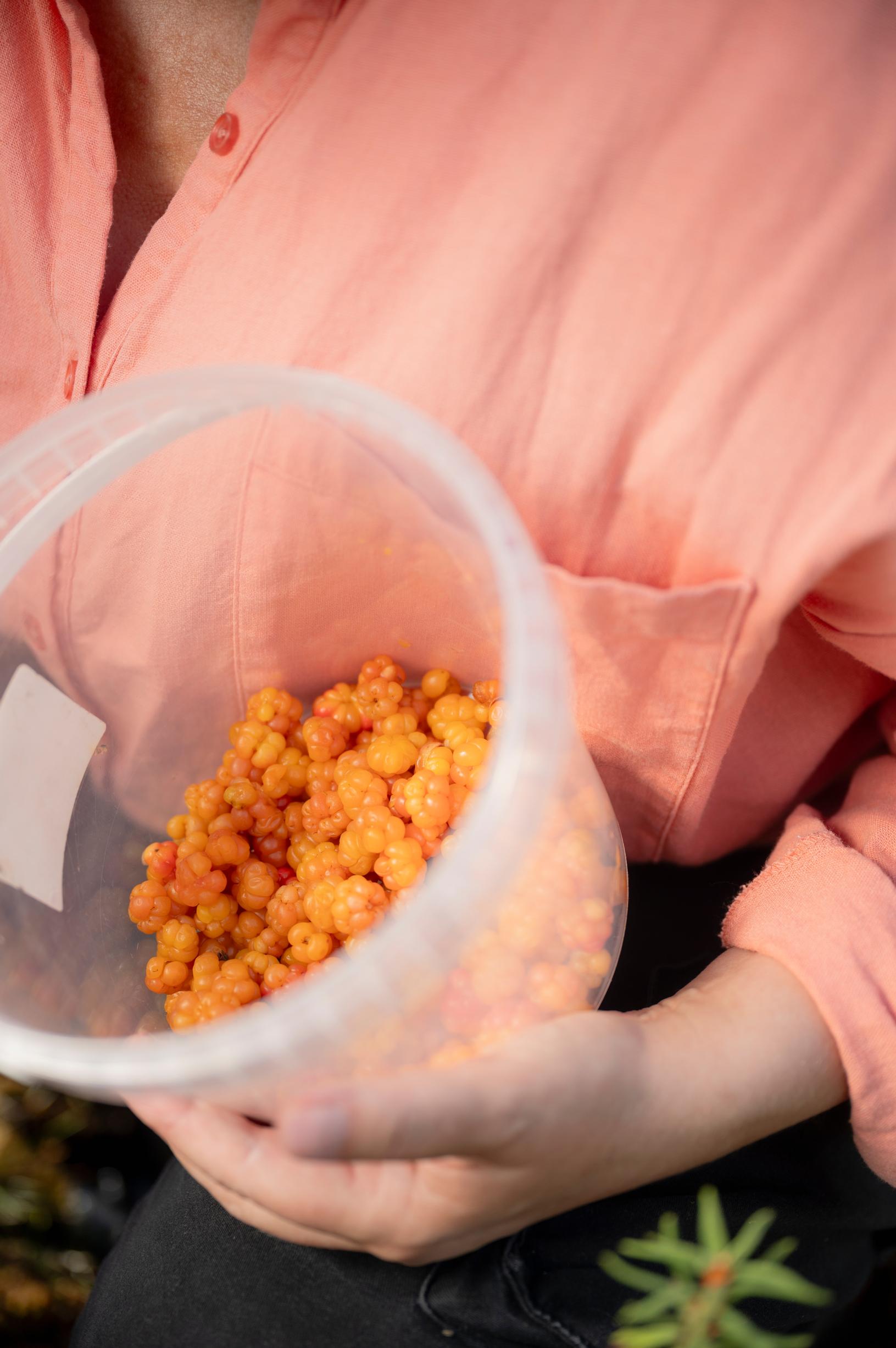 I just pick whatever I get. Early in the season, I weigh the cloudberries before freezing them, but soon forget. We have three freezers at home, which I guess is genetic. My mother and father have six. I’m from Lapland, so self-sufficiency and gathering are in my nature.