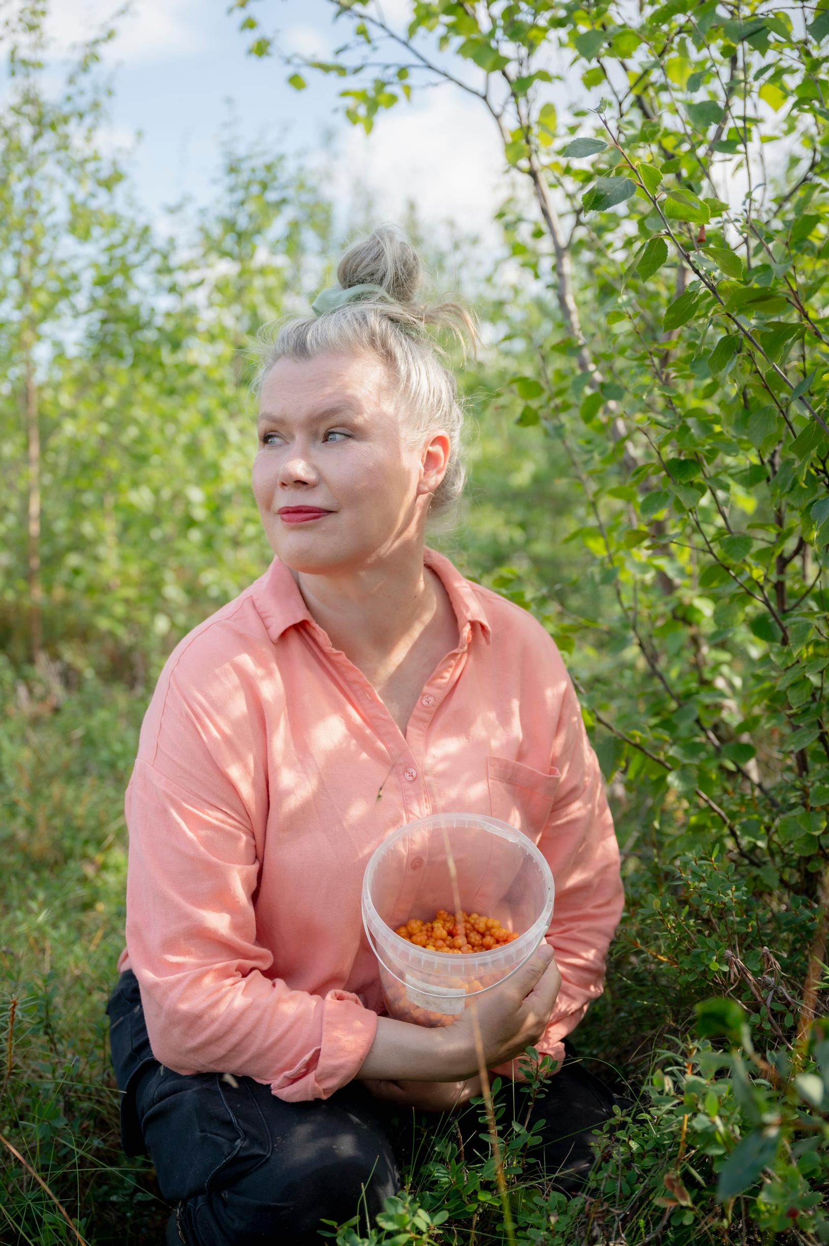 The writer Minna Rytisalo’s best and busiest weeks of the year begin in summer and continue well into fall. She starts on cloudberry bogs; next come raspberries and blueberries. The season continues with lingonberries, and in the fall, Minna still picks frosty cranberries with chilled fingers. She believes her collecting instinct is in her genes, but she hasn’t matched her parents’ record for the number of freezers.