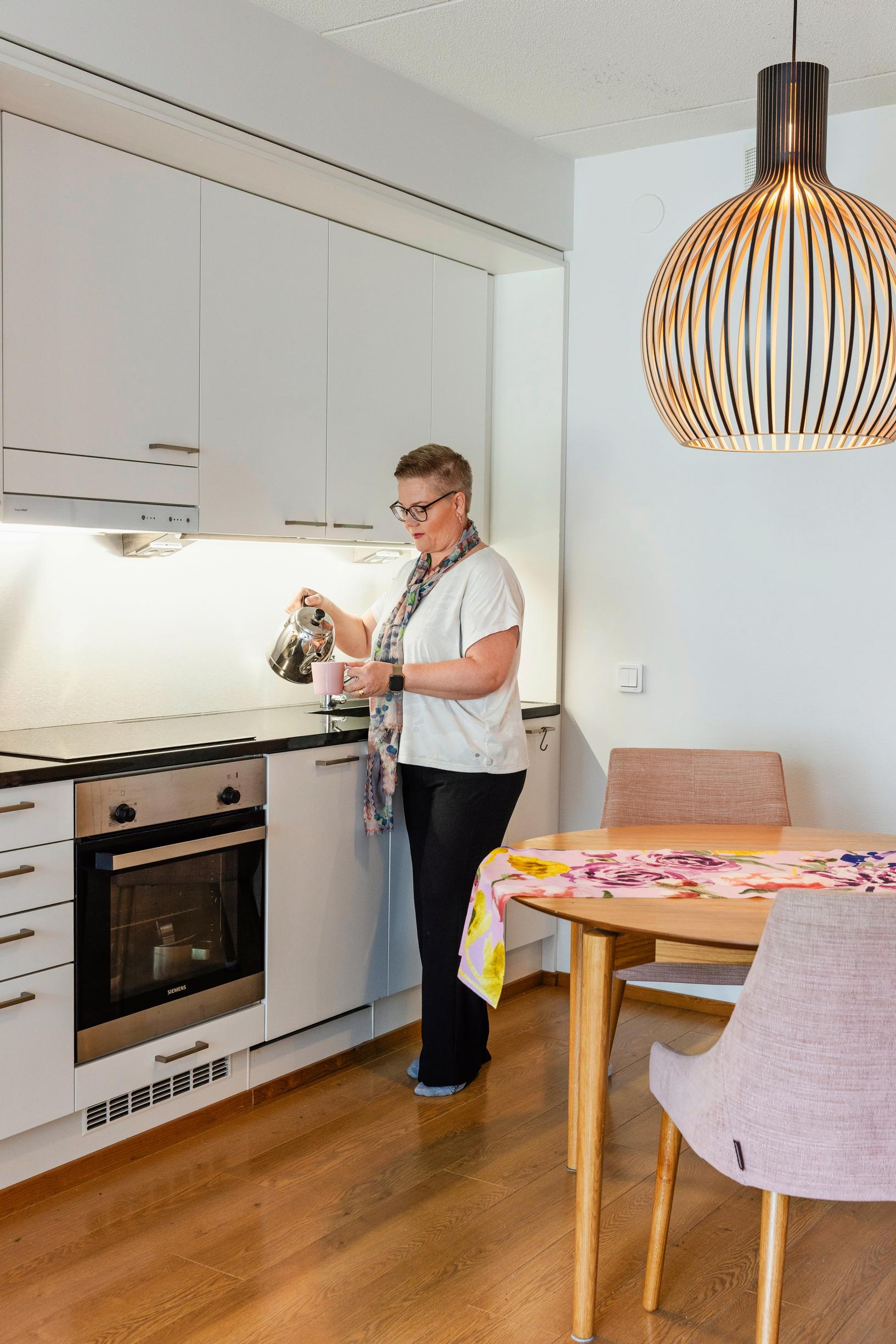 When the house finally sold, we were free to move anywhere. We ended up buying a one-bedroom apartment in downtown Riihimäki off the presales plan. Construction lasted almost a year, so in the meantime we rented elsewhere. Part of our things went directly into storage, and I staged our rental place like a hotel room. After that, 43 square meters (463 sq ft) felt positively luxurious.