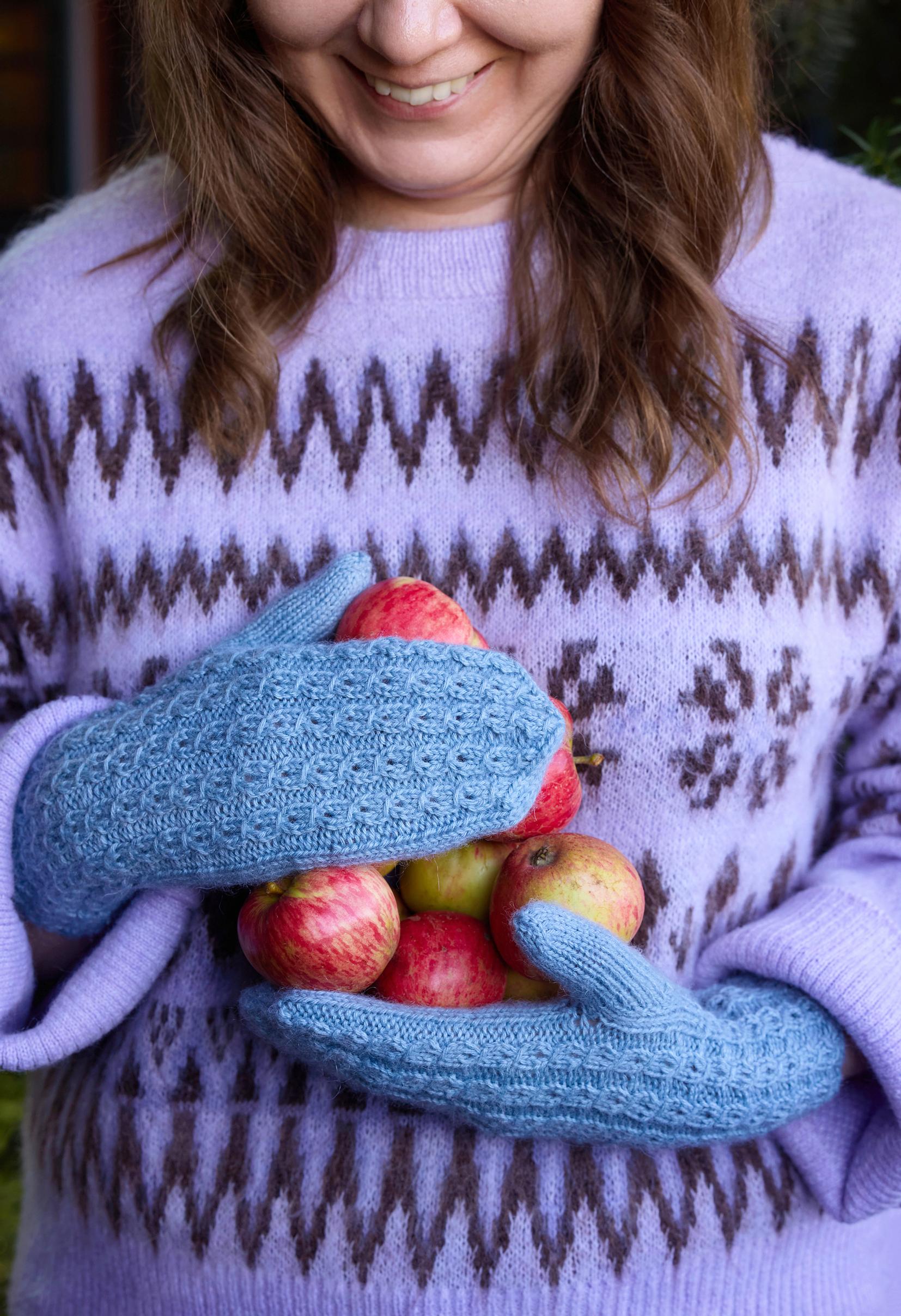 - 1 ball of Novita Helene yarn (60% merino wool, 30% silk, 10% mohair, 50 g = 200 m) in shade 1151 Horizon (you will need about 40 g for these mittens)