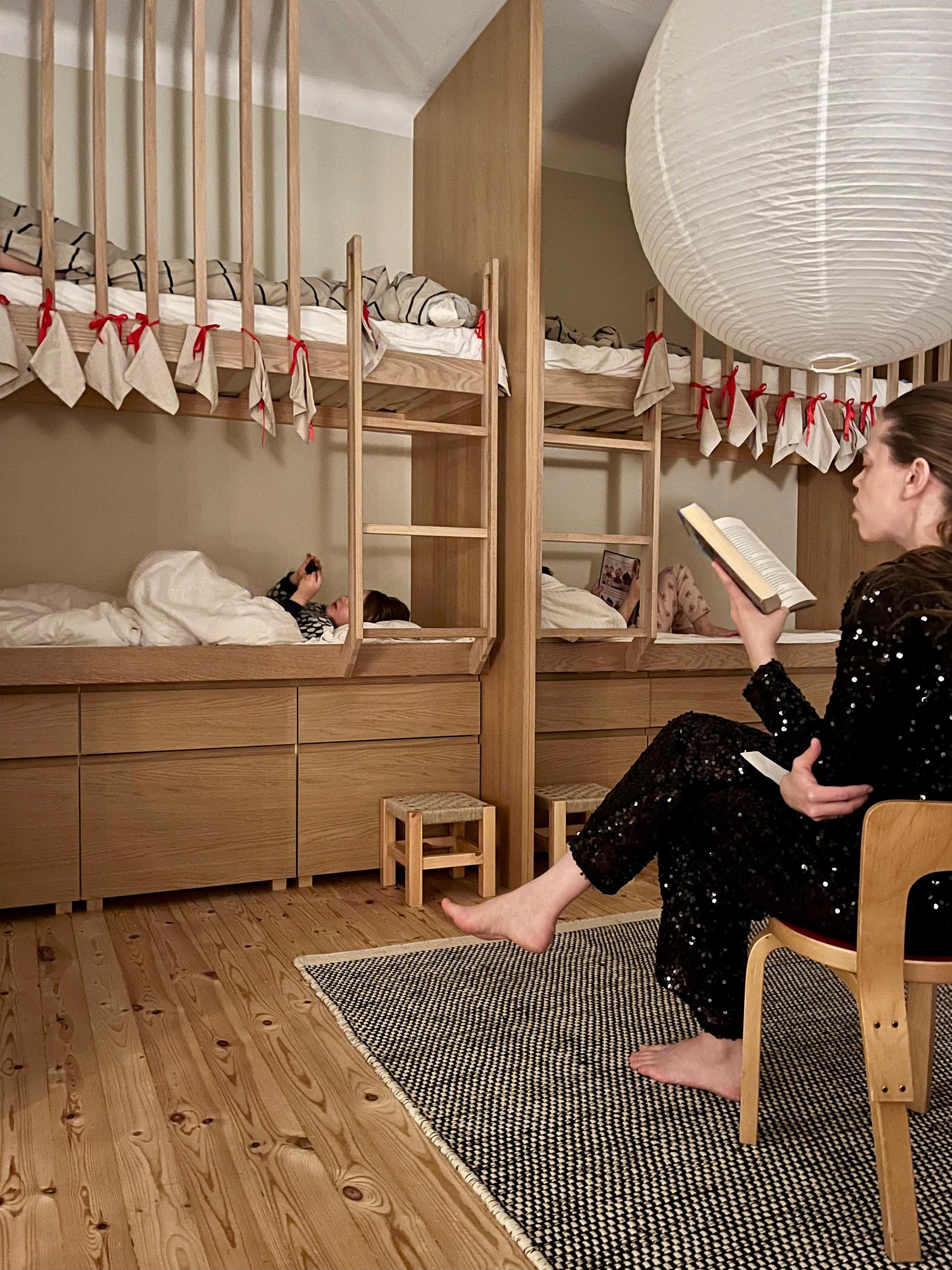 Iina’s children shared one room, but as they grew, they wanted spaces of their own. The answer was inventive: a bunk bed that also serves as a room divider.