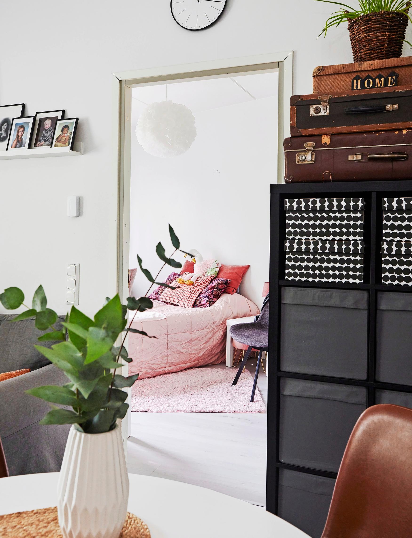 “We take any jackets and shoes we don’t need to recycling. My daughter has made some pocket money by selling her old outerwear on the Vinted marketplace. Off-season clothes stay in the walk-in closet. We use Ikea’s plastic Trones storage cabinets, which fit well in a small space and are very practical.”
