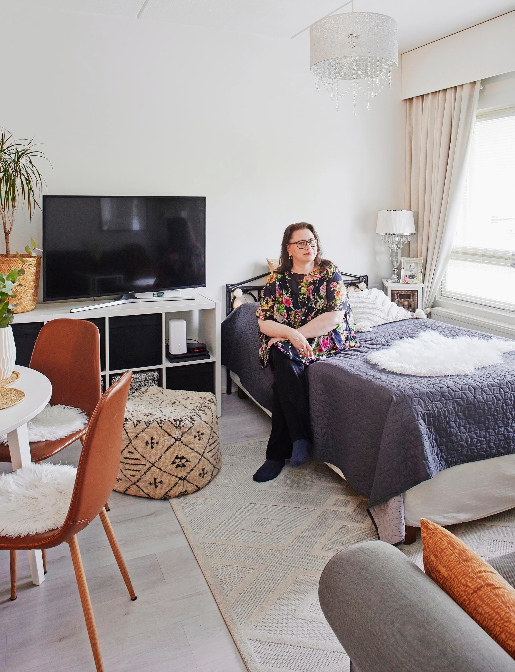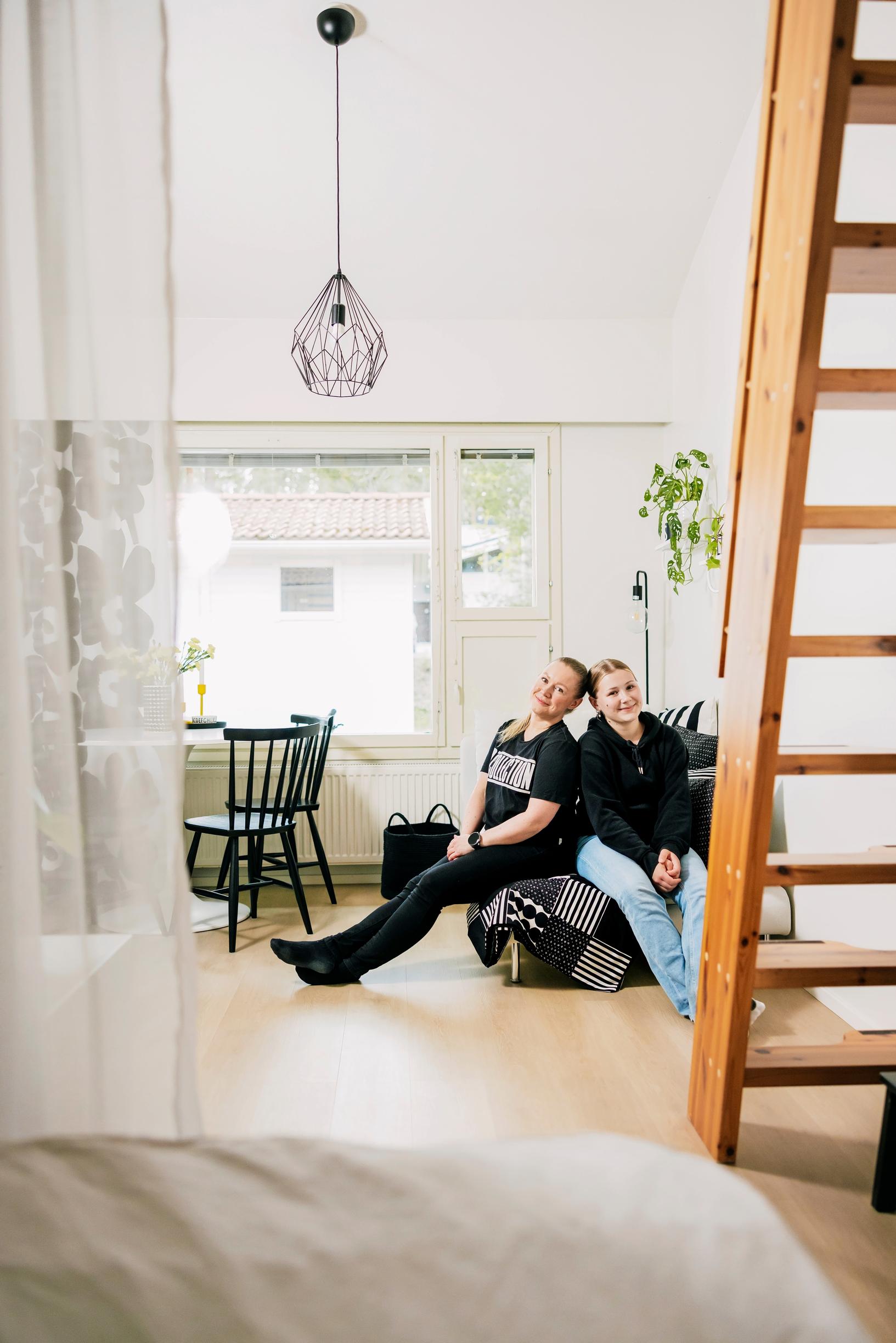 “When my older daughter moved away to study, I started dreaming of living in a row house. I came across a 30-sqm (approx. 323-square-ft) studio with a loft,” says 41-year-old Sini Toivola.