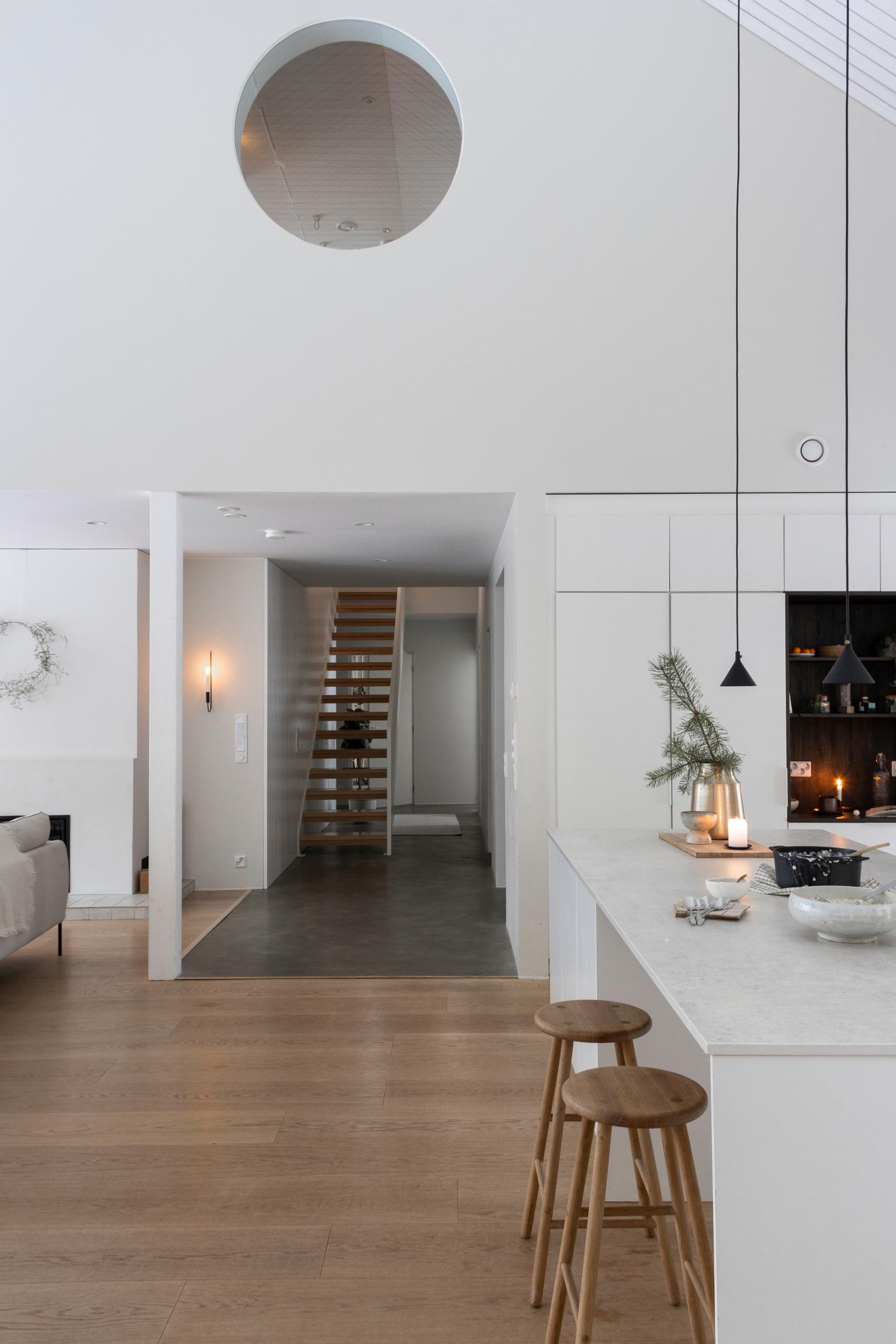 The upstairs sits over only one half of the house, which gives the living room a lofty height of 6 meters (19’ 8”). That was important to Johanna when they were designing the home.