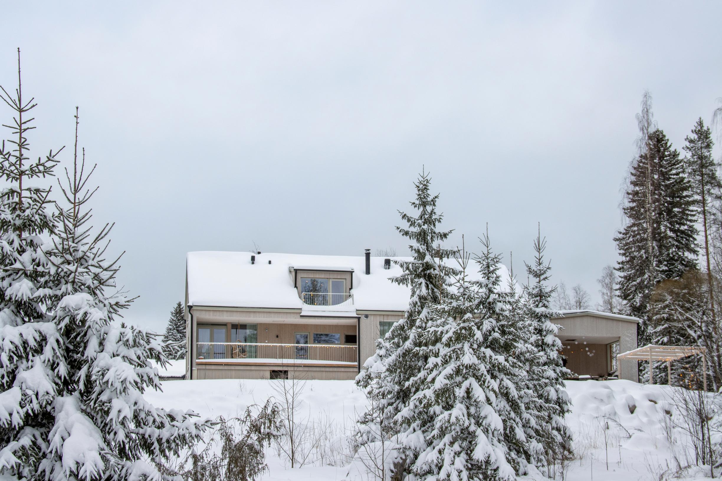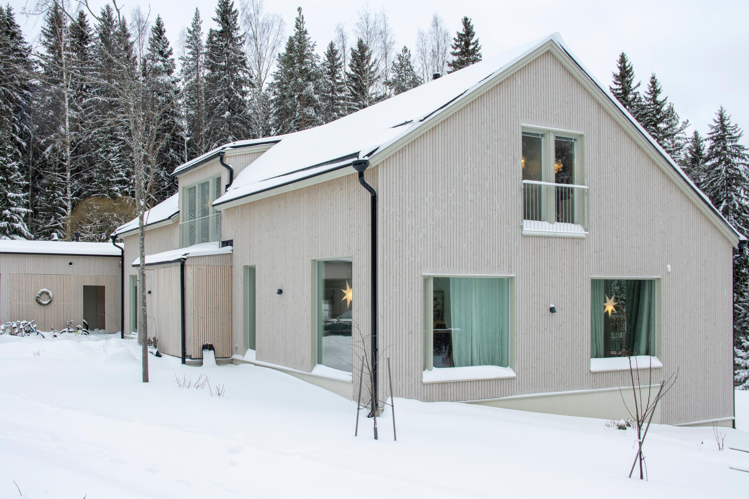 Home A detached house completed in 2021 on the shore of Alvajärvi in Jyväskylä. The house has about 230 square meters (about 2,480 sq ft) of space, and the outbuilding about 25 (about 270 sq ft).