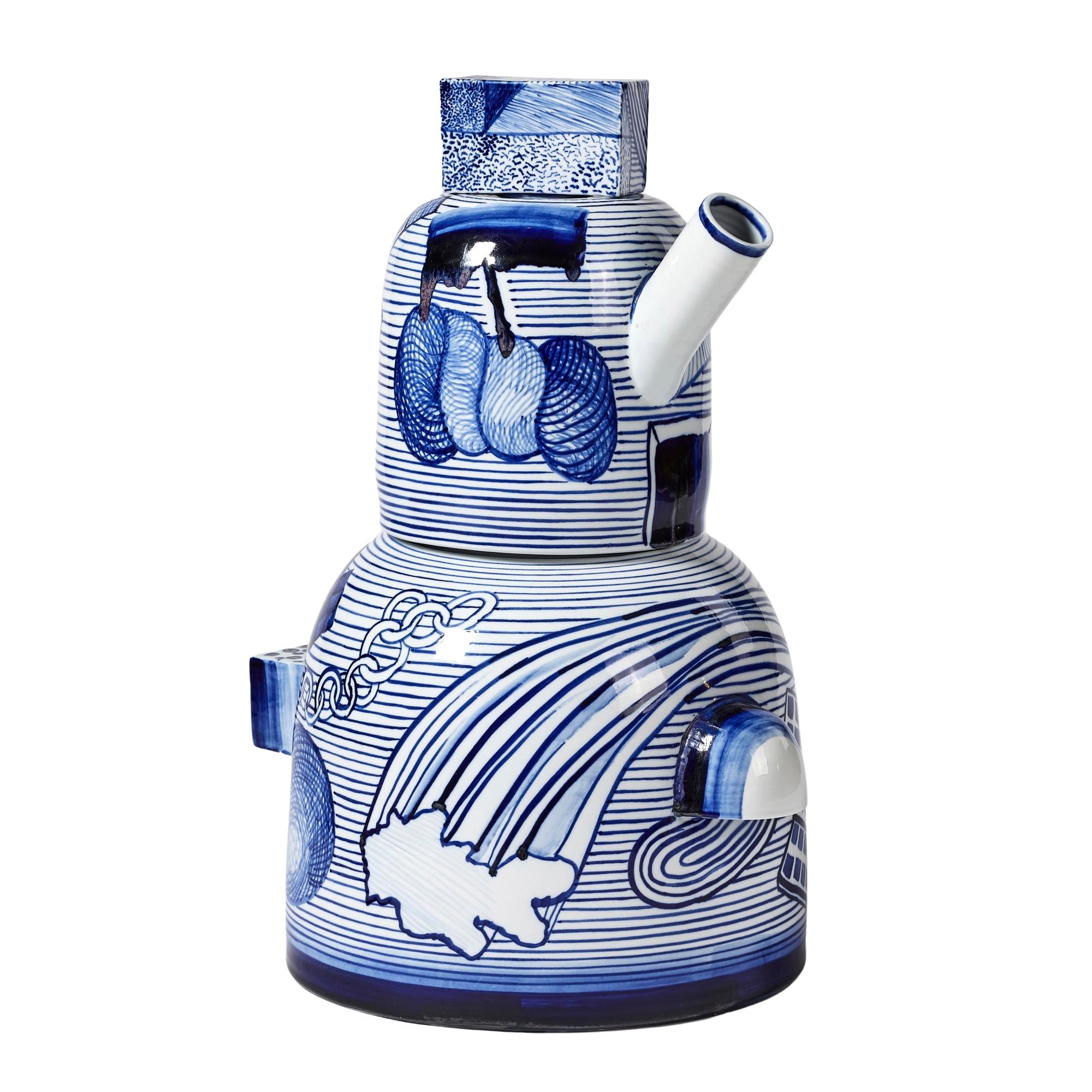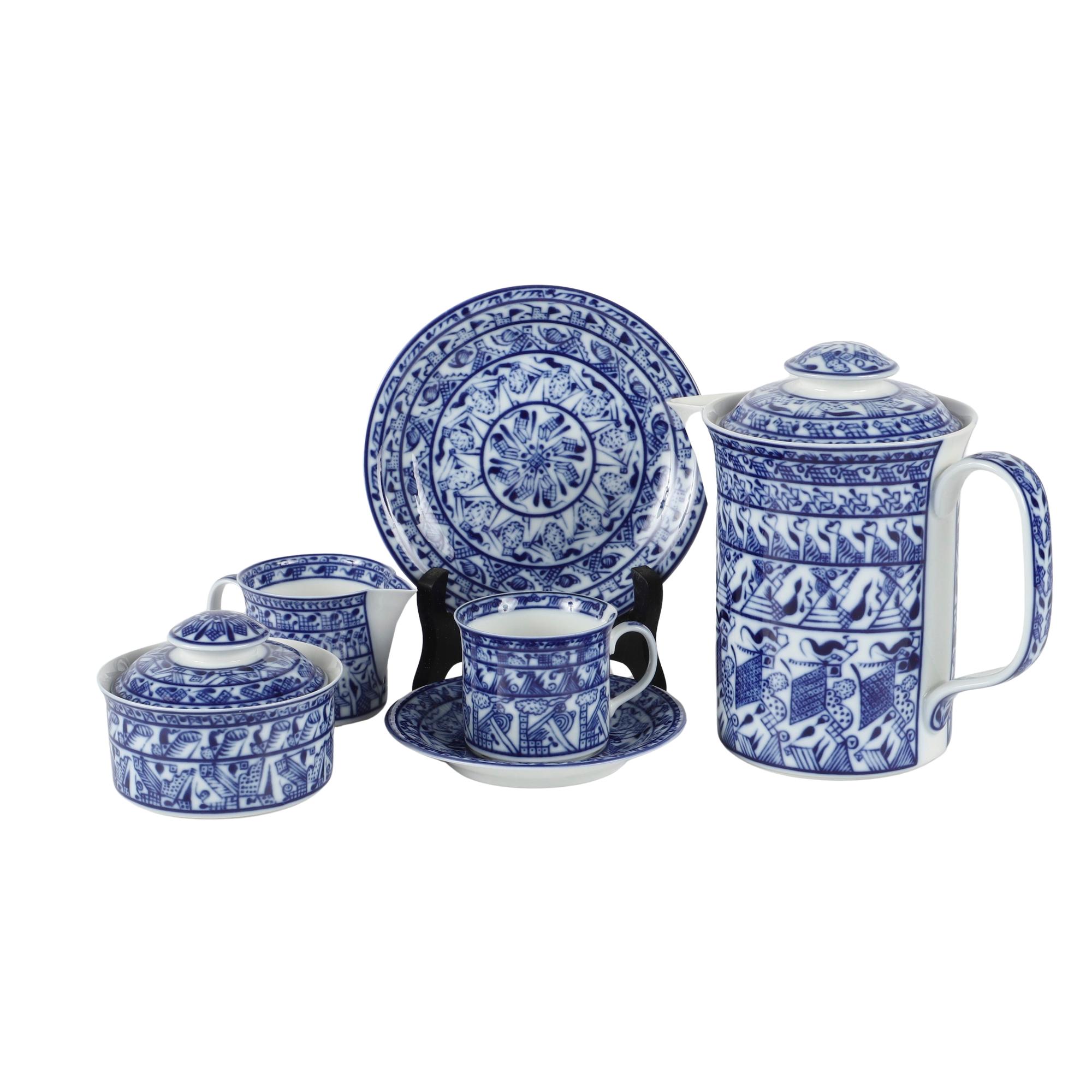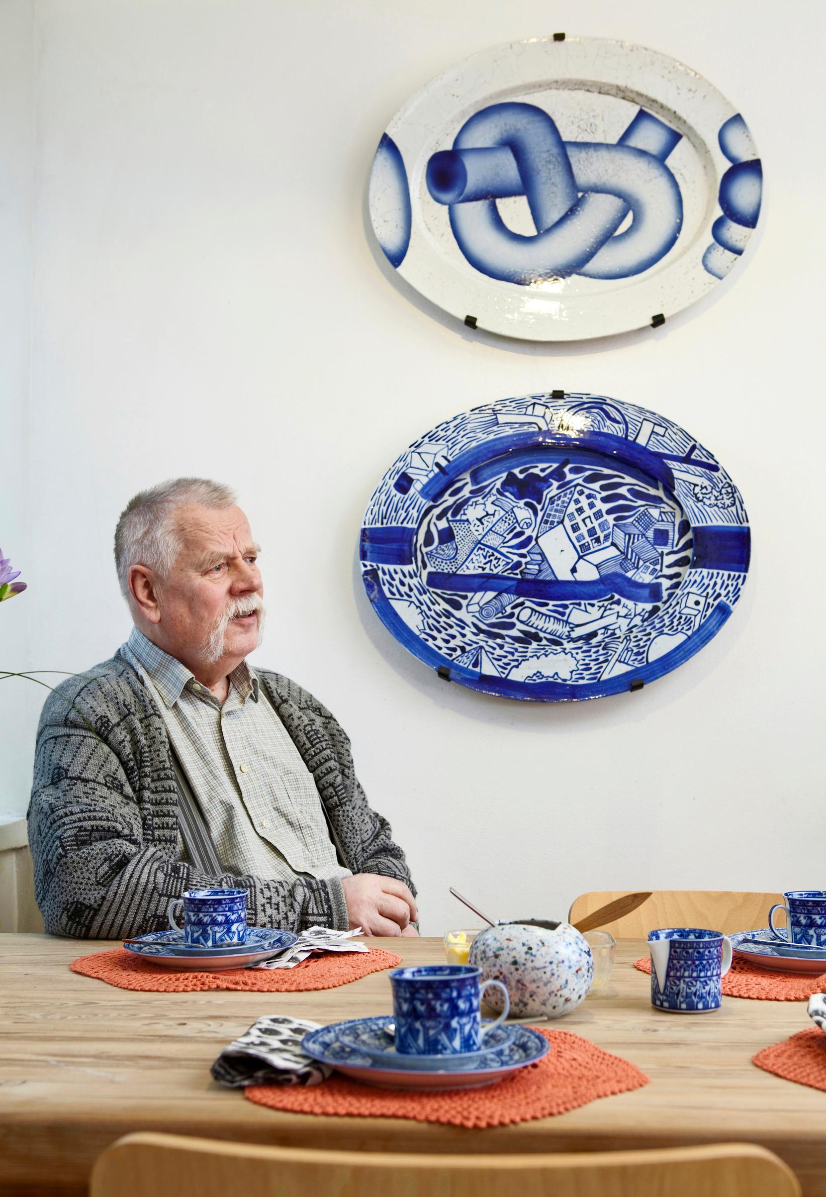 Oiva also provided surface designs for following projects. In 1989, Rörstrand launched the Cobolti dinnerware series, created by Oiva and his Swedish friend and colleague Signe Persson-Melin, once again featuring cobalt-blue tones. Persson-Melin designed the shapes, and Oiva hand-painted them with small ornamental motifs.