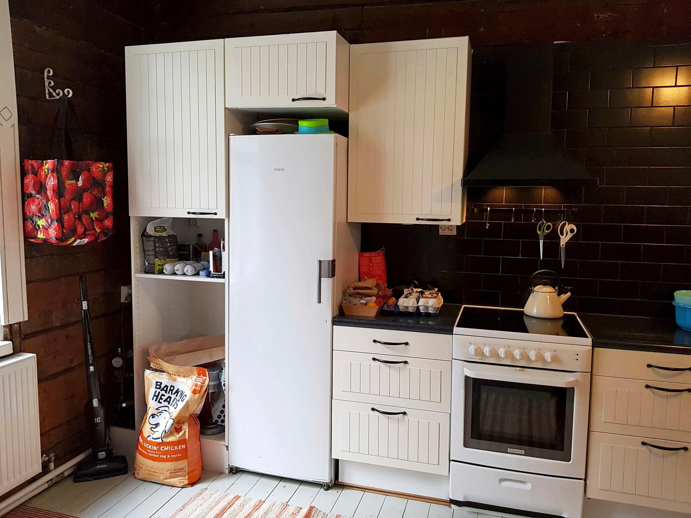 When Salla and Jussi bought the house, the kitchen was a mix of mid-20th-century high-tech and early 2000s kitchen cabinet styles.