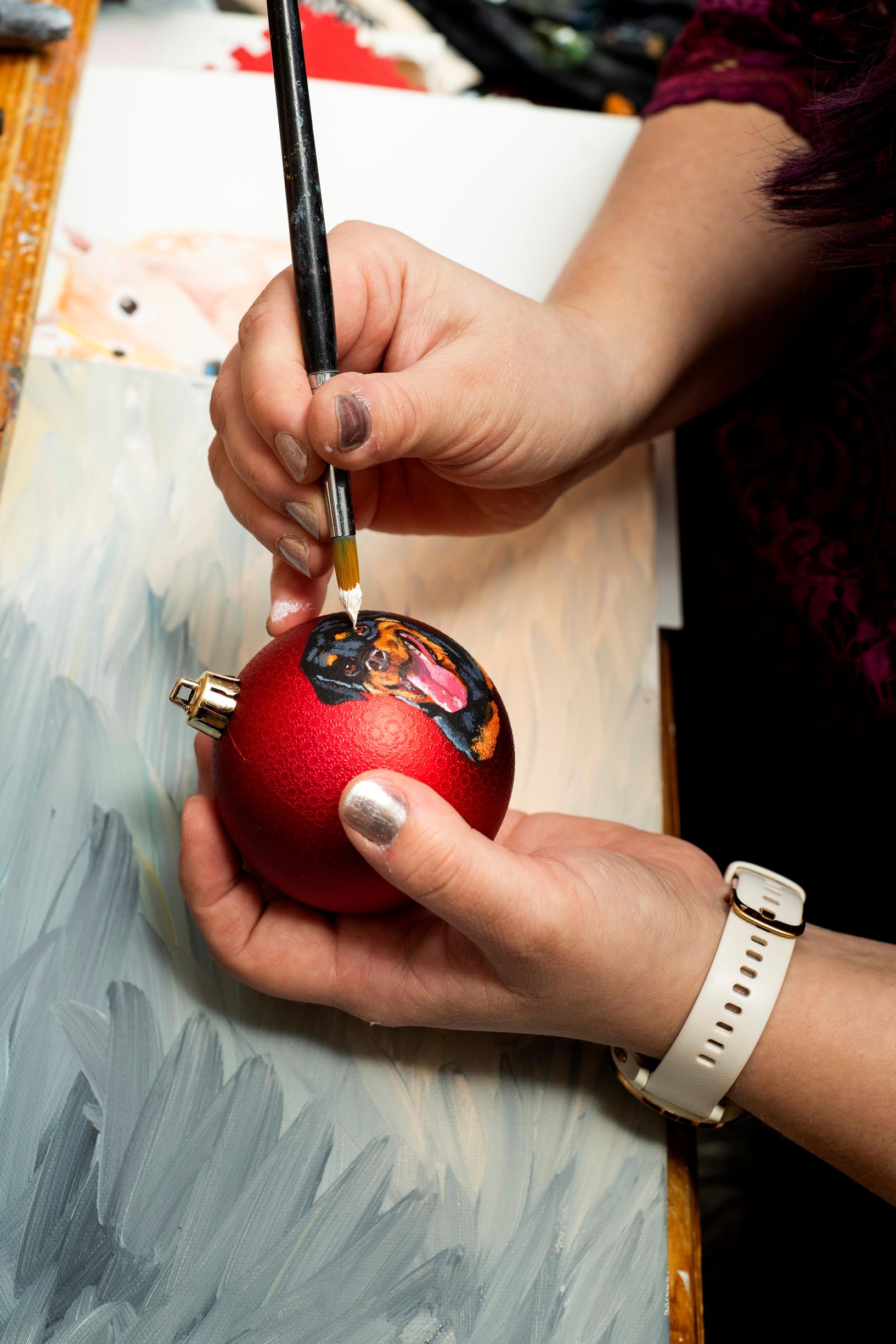 Marianne brings beloved pets to life on Christmas ornaments: “My first portrait subjects were found at home”