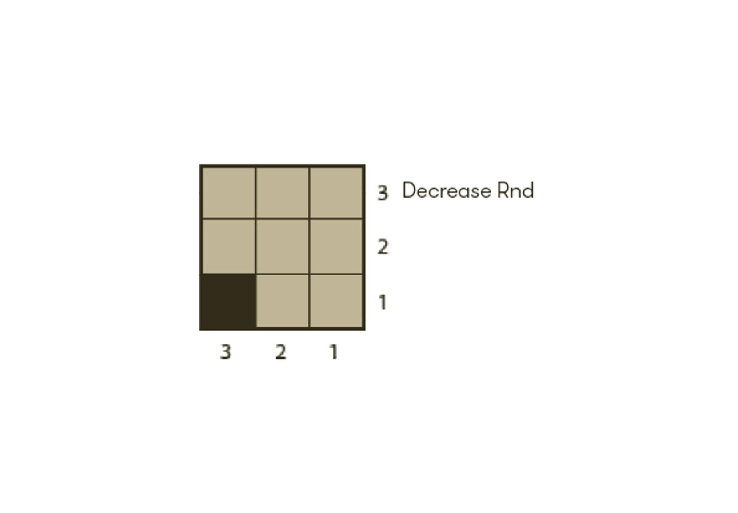 Repeat Chart Rows 1–3 until you have 12 sts left. Cut the yarn and thread it through the remaining sts.