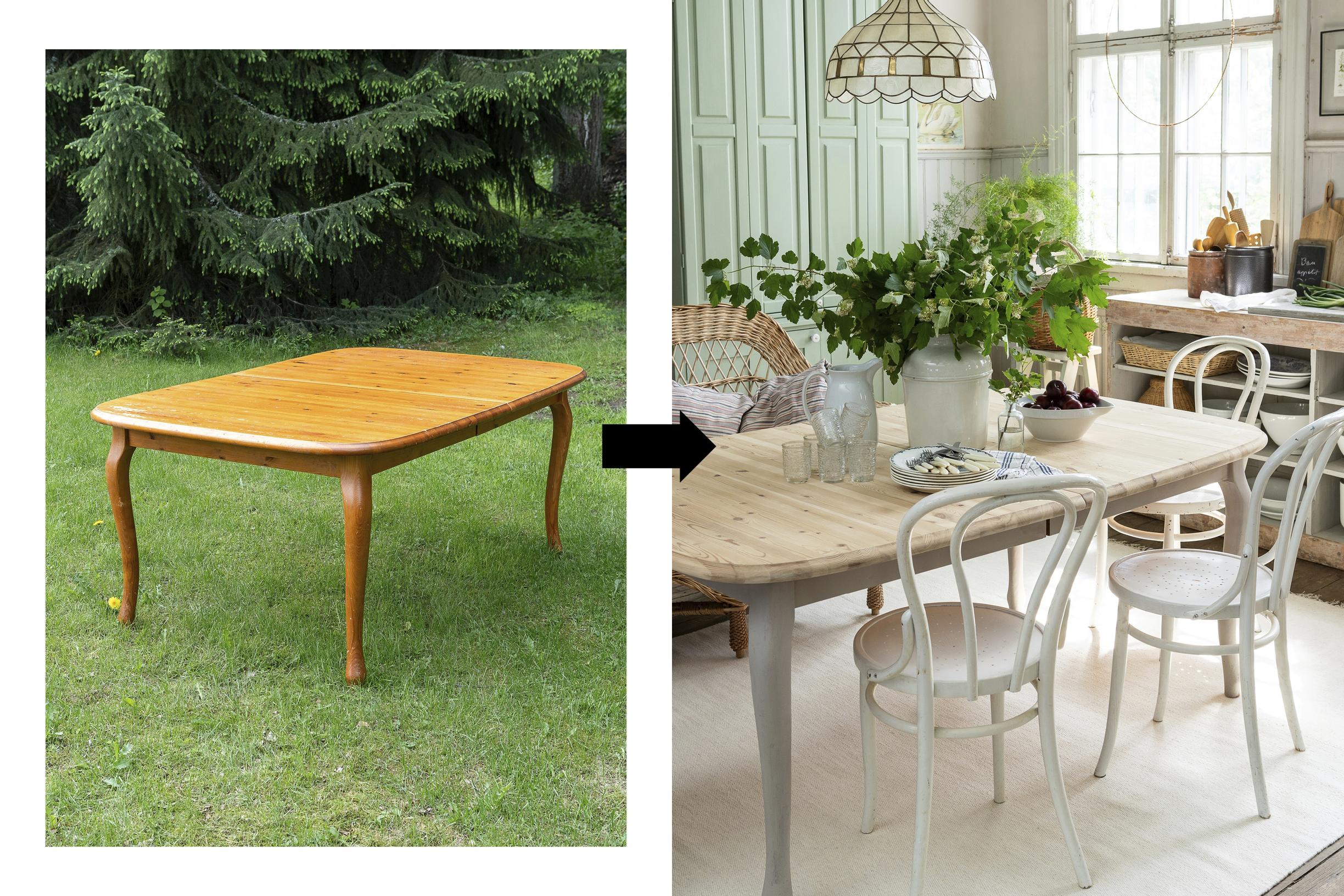 A stained pine table from the 1990s was refreshed with sanding, milk, and a soap treatment. Check out instructions and a video from blogger Katja Rinkinen that explains the process!