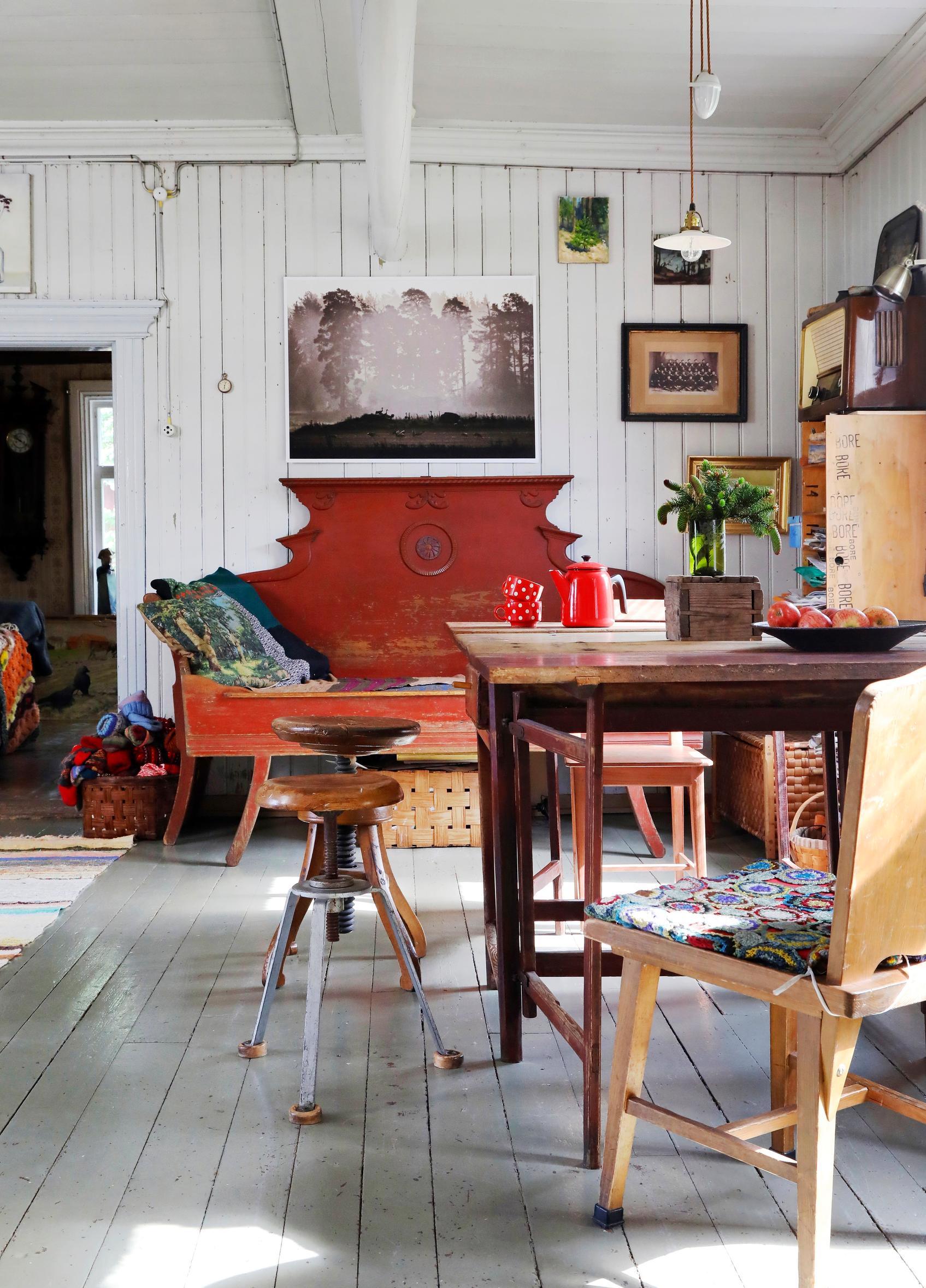 Poet Heli Laaksonen is captivated by the creaking floorboards of the main room, the walls that have witnessed different lives, and the tranquility of southwestern Finland. For eight years, she has lived in the 140-year-old Perävainio farmhouse on the edge of a fertile field with her partner, Miikka Lappalainen. The house is filled with old items they both cherish. Miikka had been collecting them for years before the couple moved in together.
