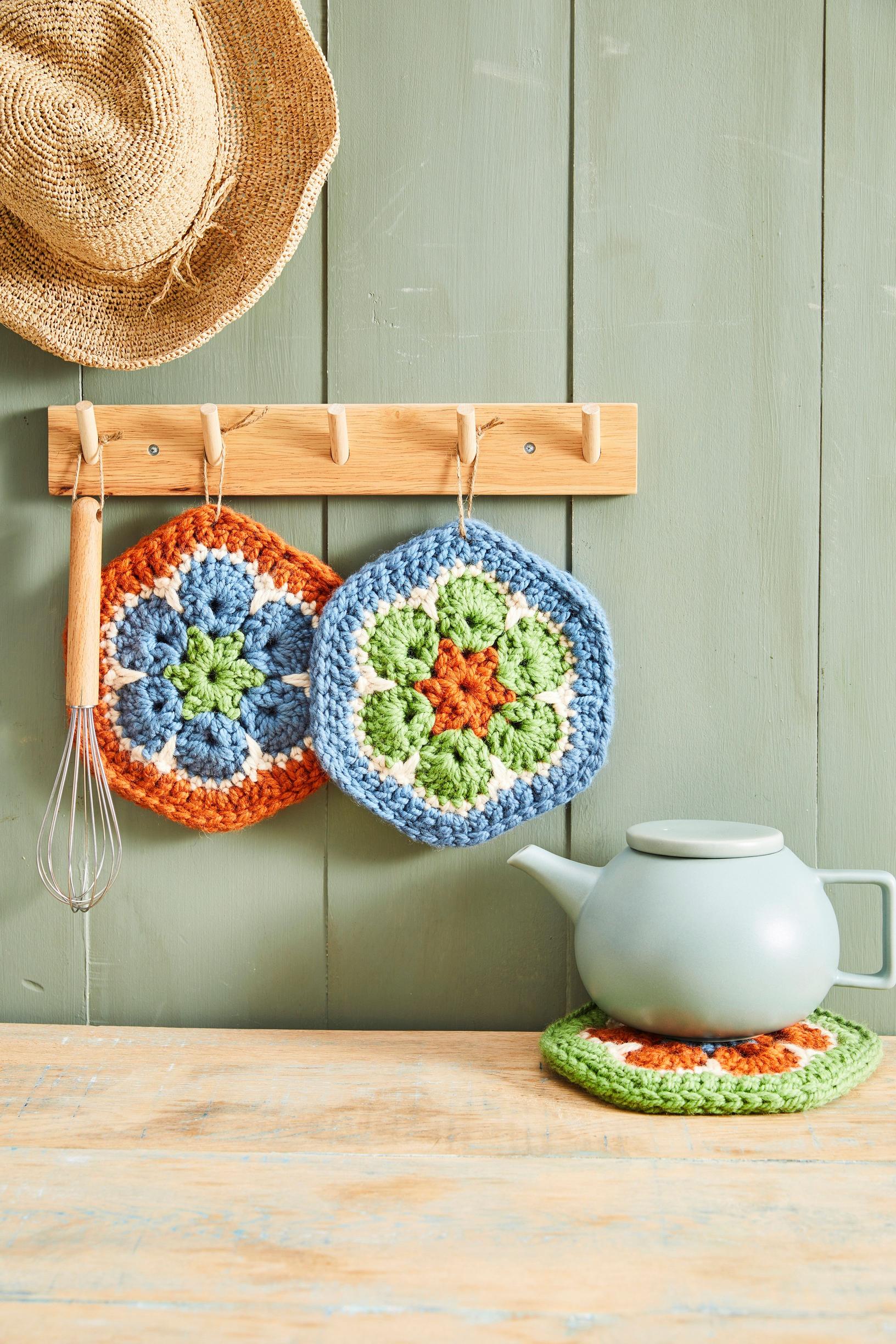 Make your kitchen bloom with these colorful crocheted African flower potholders!