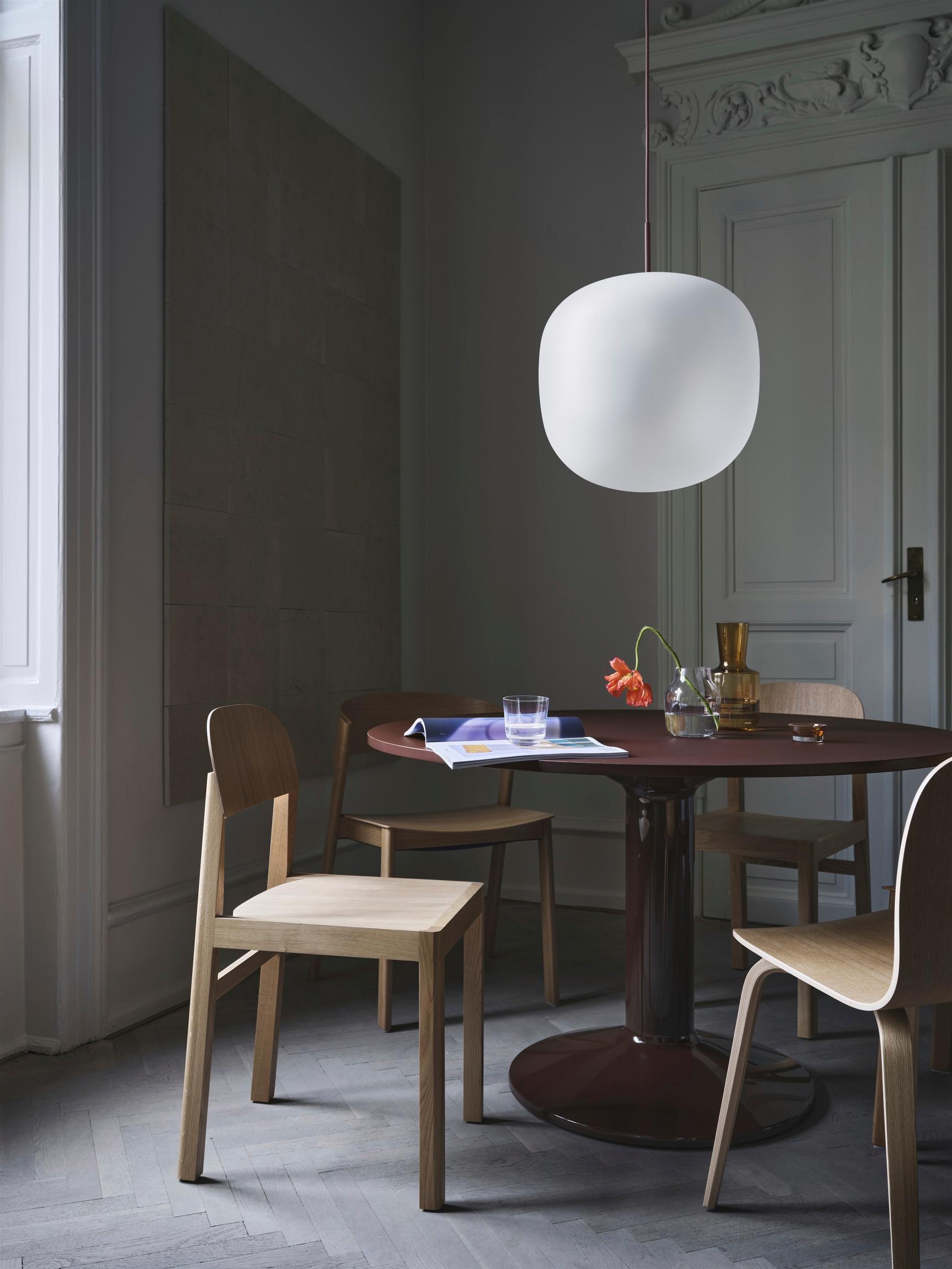 A good height for a dining table lamp is about 55 to 65 centimeters from the tabletop to the bottom of the fixture. This spreads light across the table without shining directly in anyone’s eyes. If your table isn’t in the center of the room, position the lamp over the table rather than the room’s midpoint. For a long table, use multiple lamps: one large fixture typically won’t reach all diners.