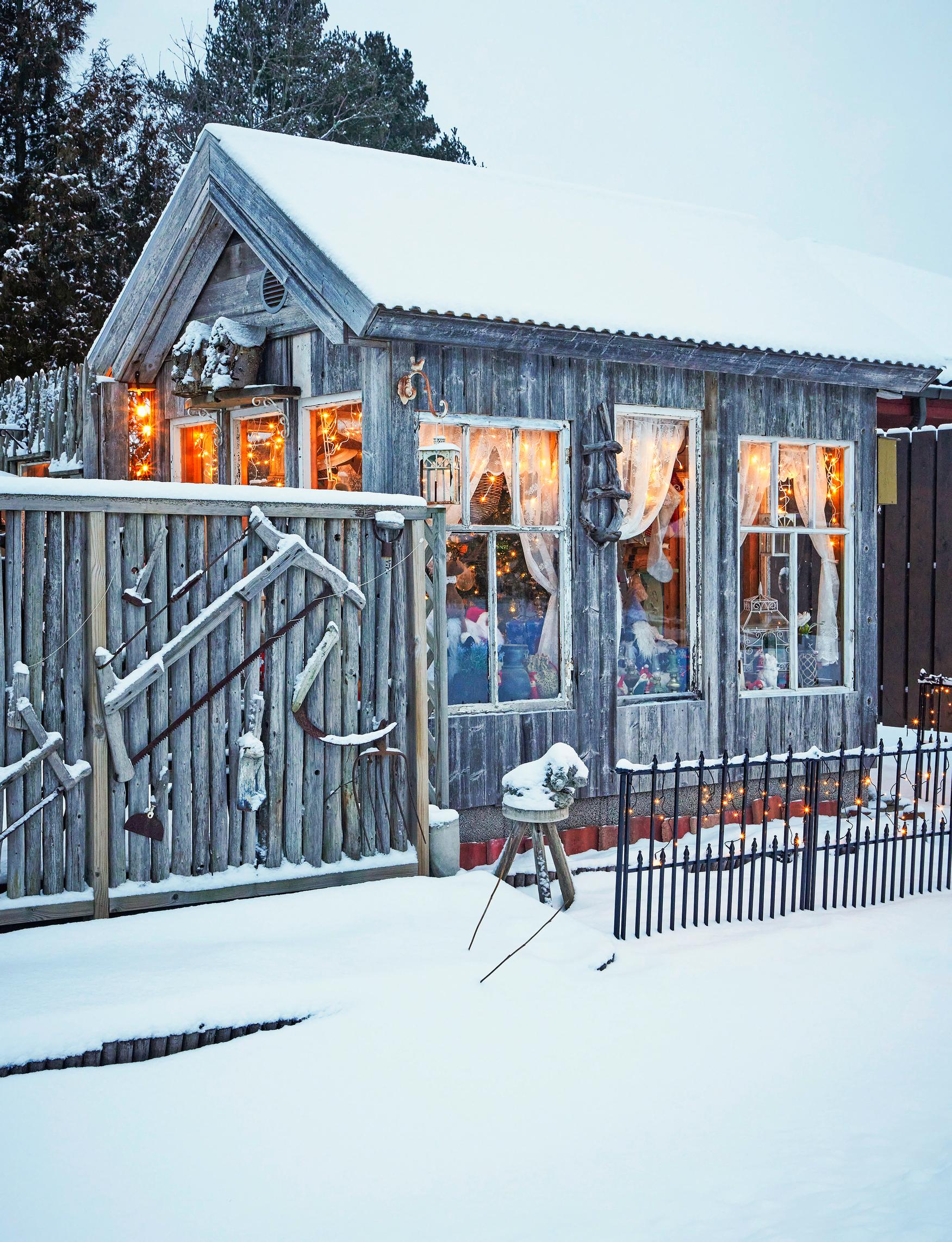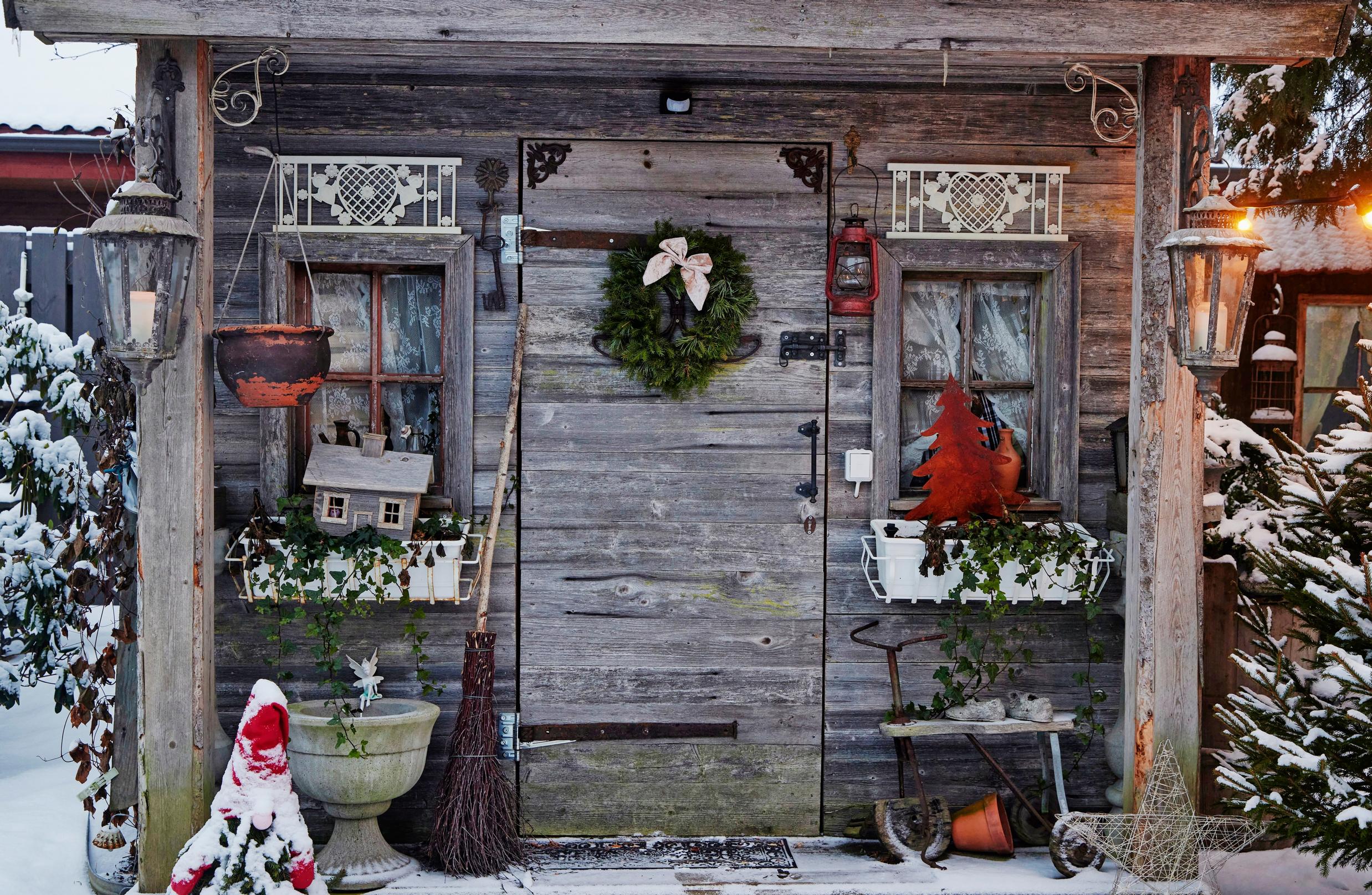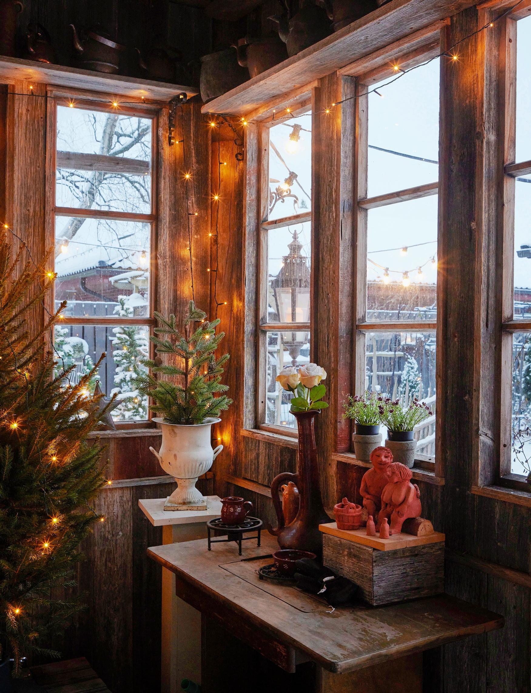until the end of November, Tarja holds herself back. Then she starts building Christmas mood with lights and lanterns. By Independence Day, she has dressed the garden for Christmas. For passersby, Tarja creates a Christmas window—or really, an entire cottage.