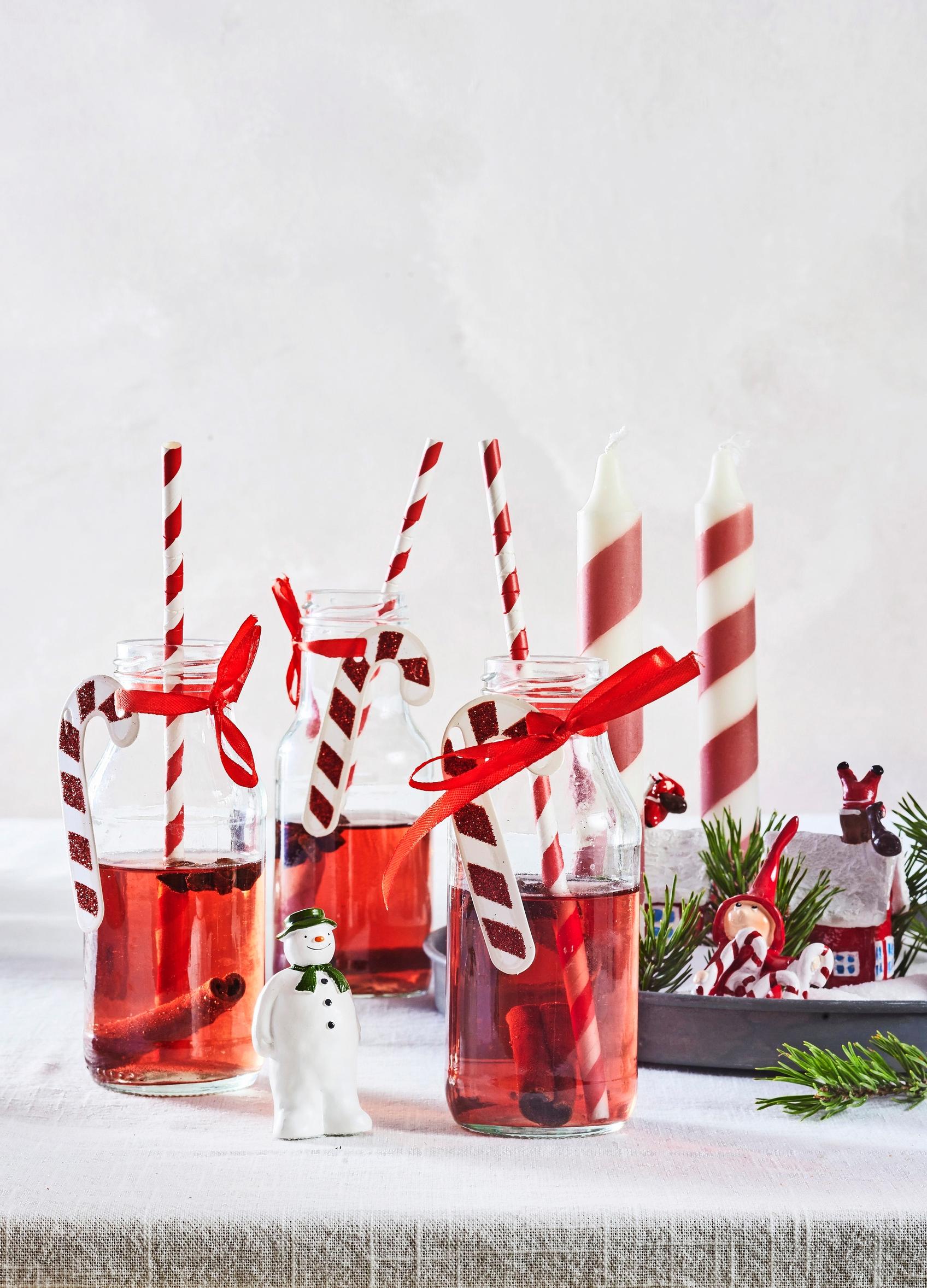 Give old glass bottles a second life by serving mulled wine in them. Tie on a pretty red bow and add a matching ornament. Cheers to Christmas!