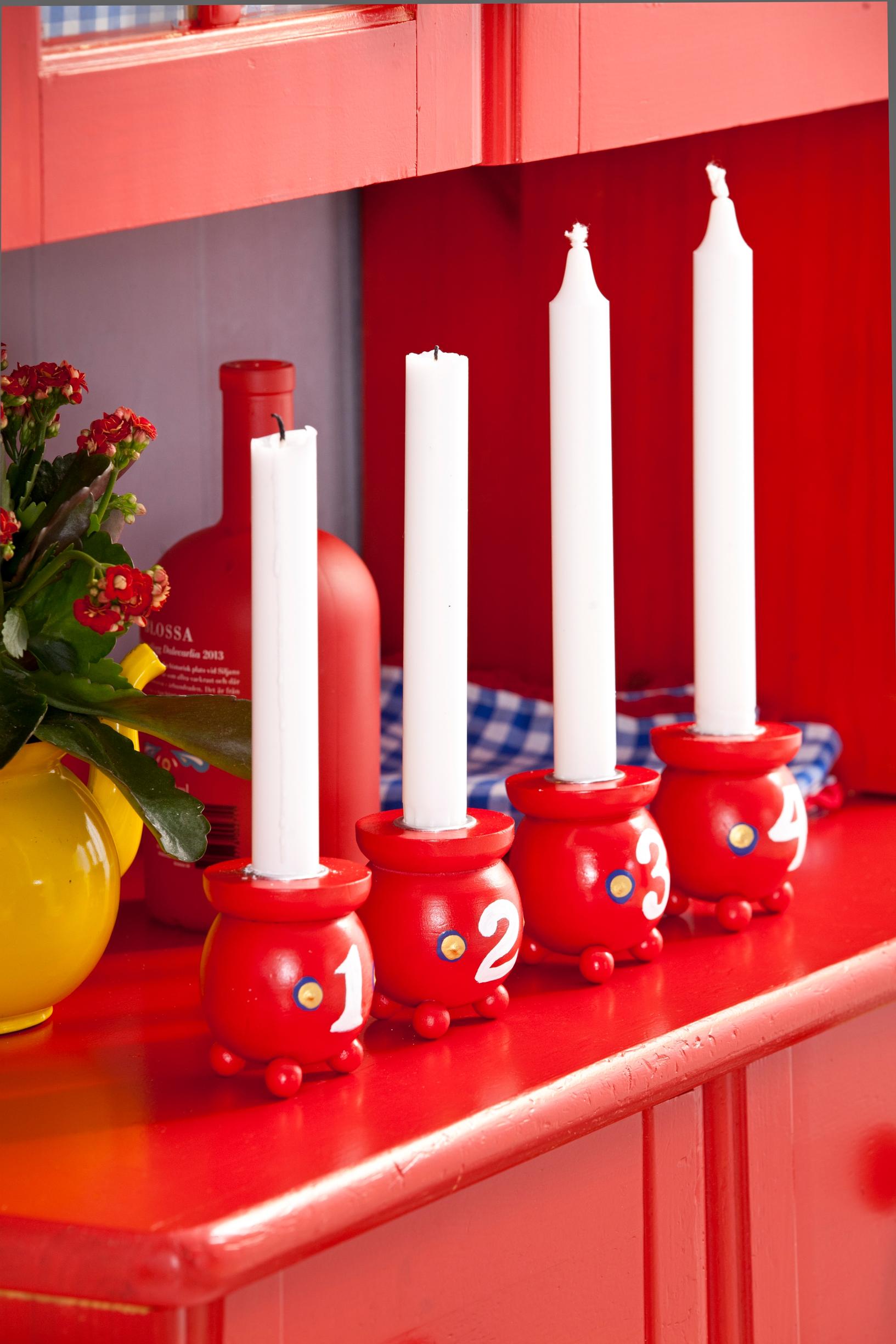 With some paint, turn mismatched candleholders into an Advent candle set. By using numbers and a uniform color, the different candleholders will look like a group.
