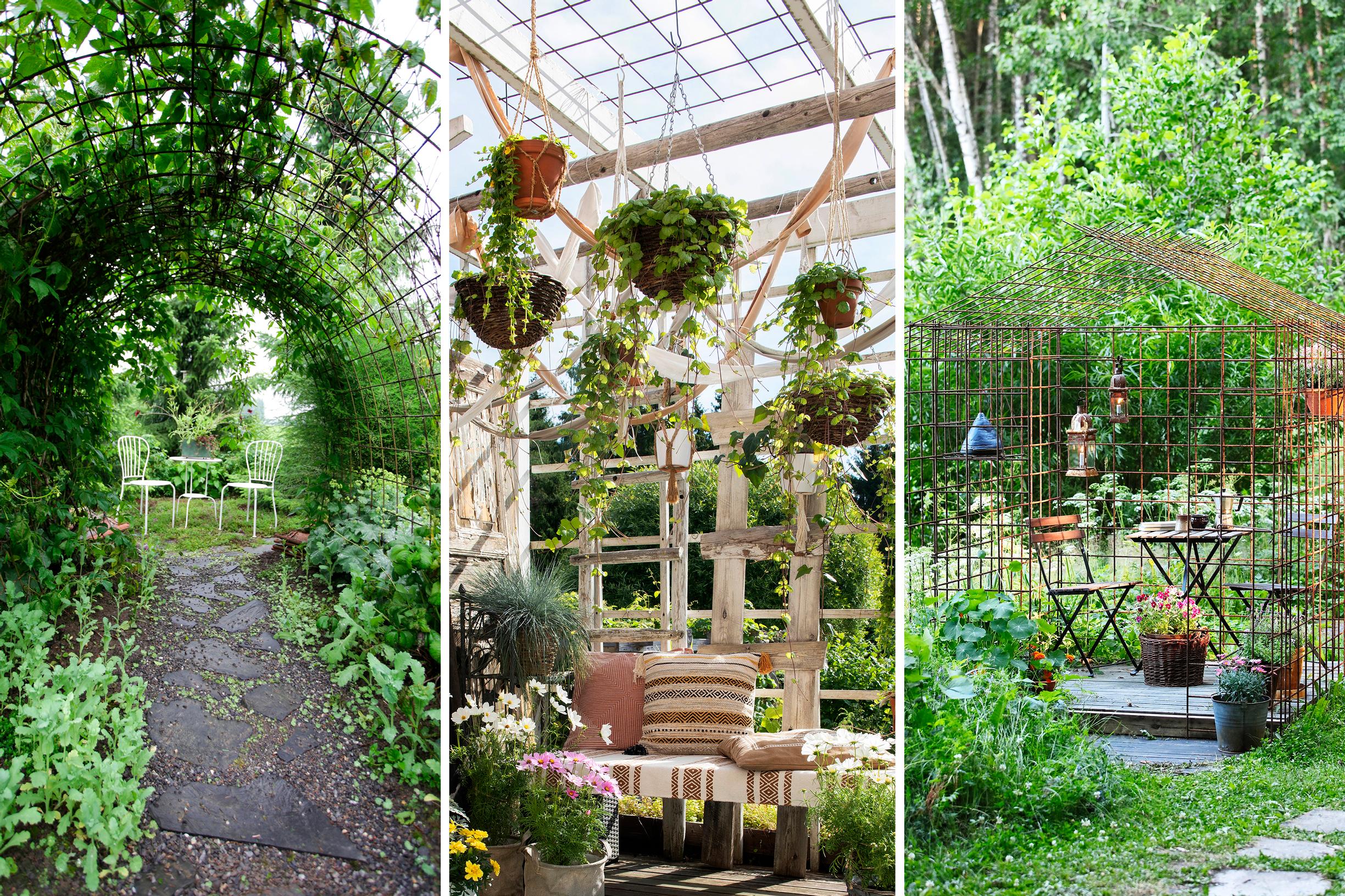 This is the perfect place to lounge in summer! The box-like frame is easy to assemble and holds up in any weather. Covered in climbing plants, it becomes a hidden room in the middle of your garden. Here’s how to make a gazebo from wire mesh! [in Finnish]