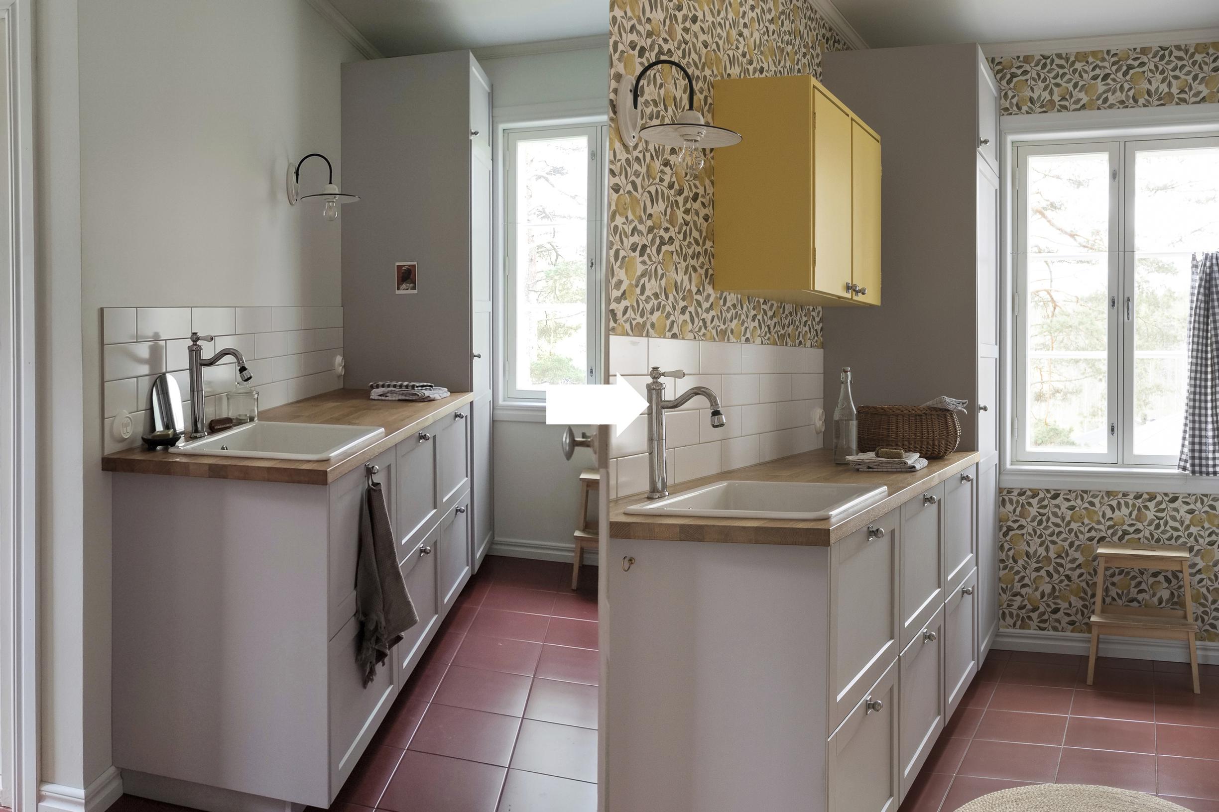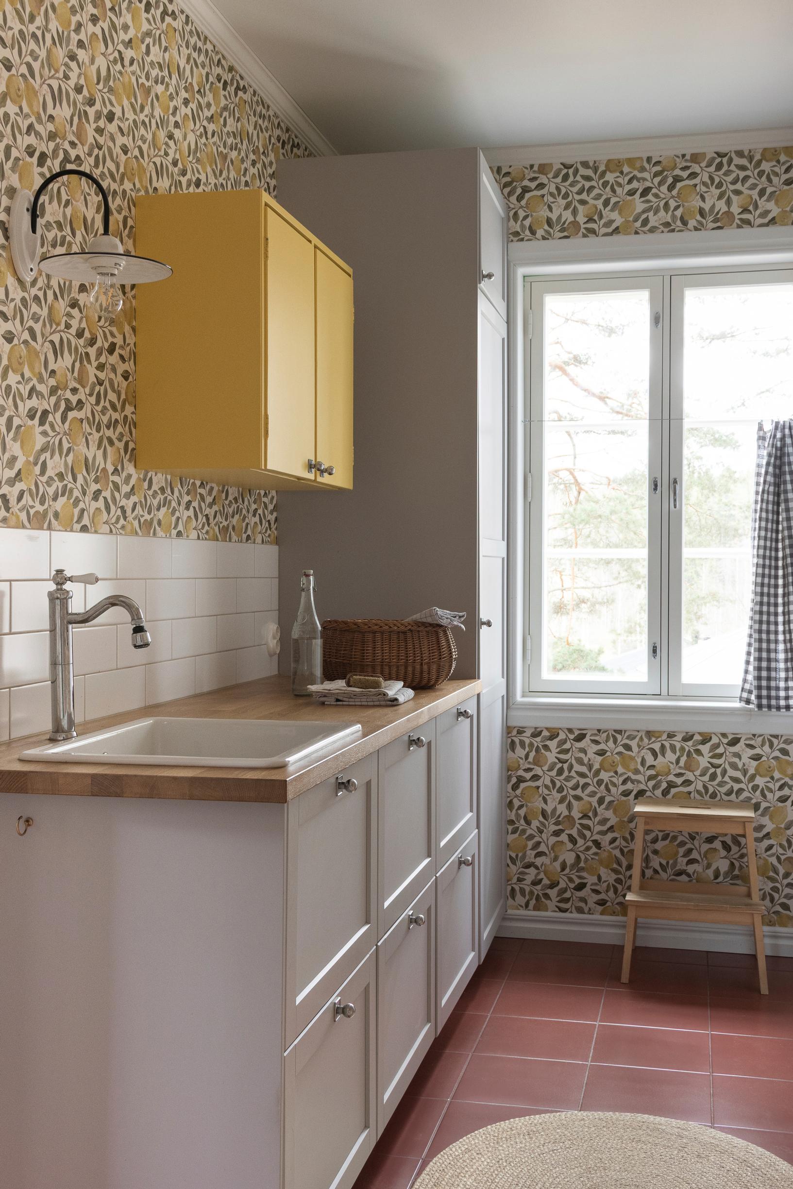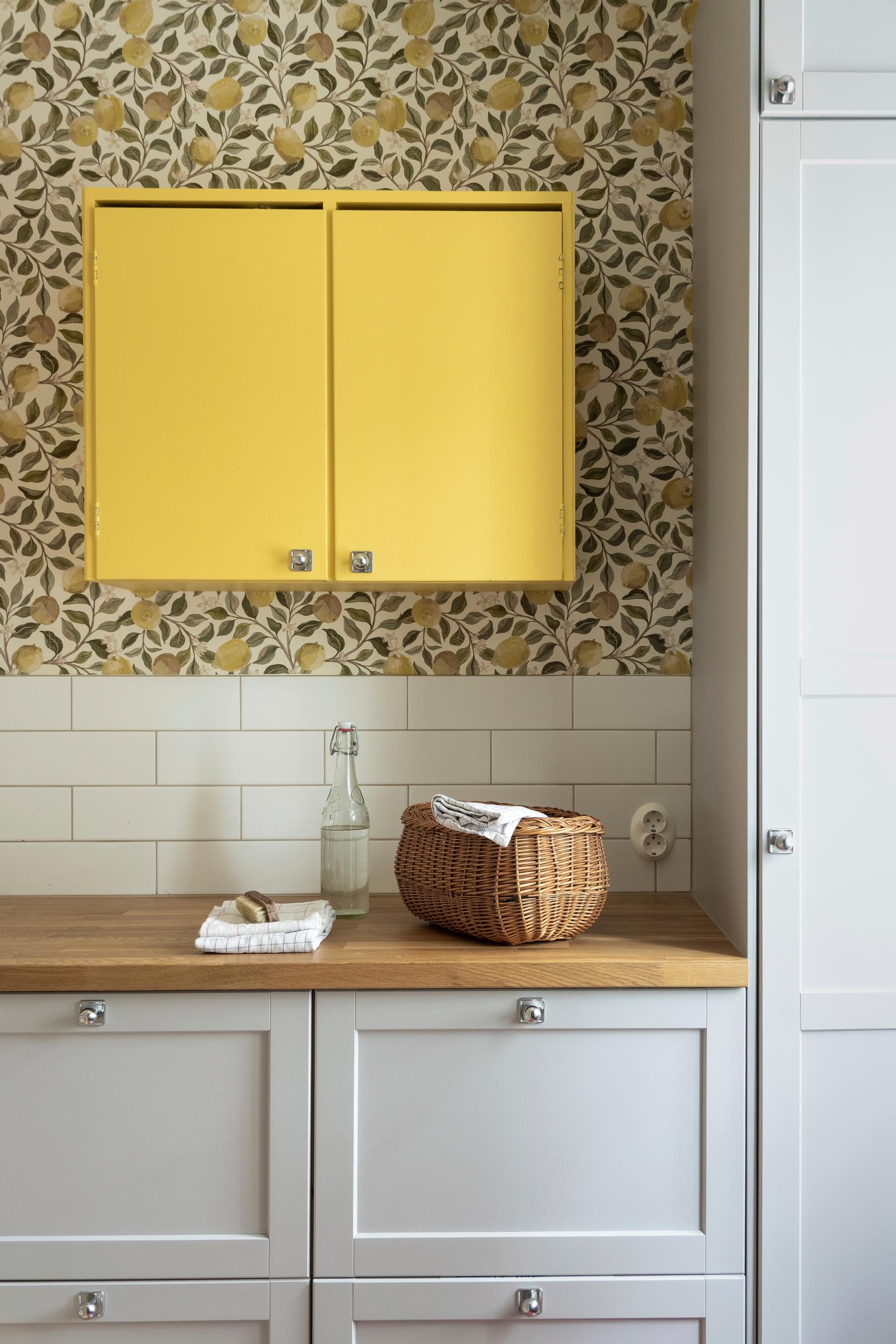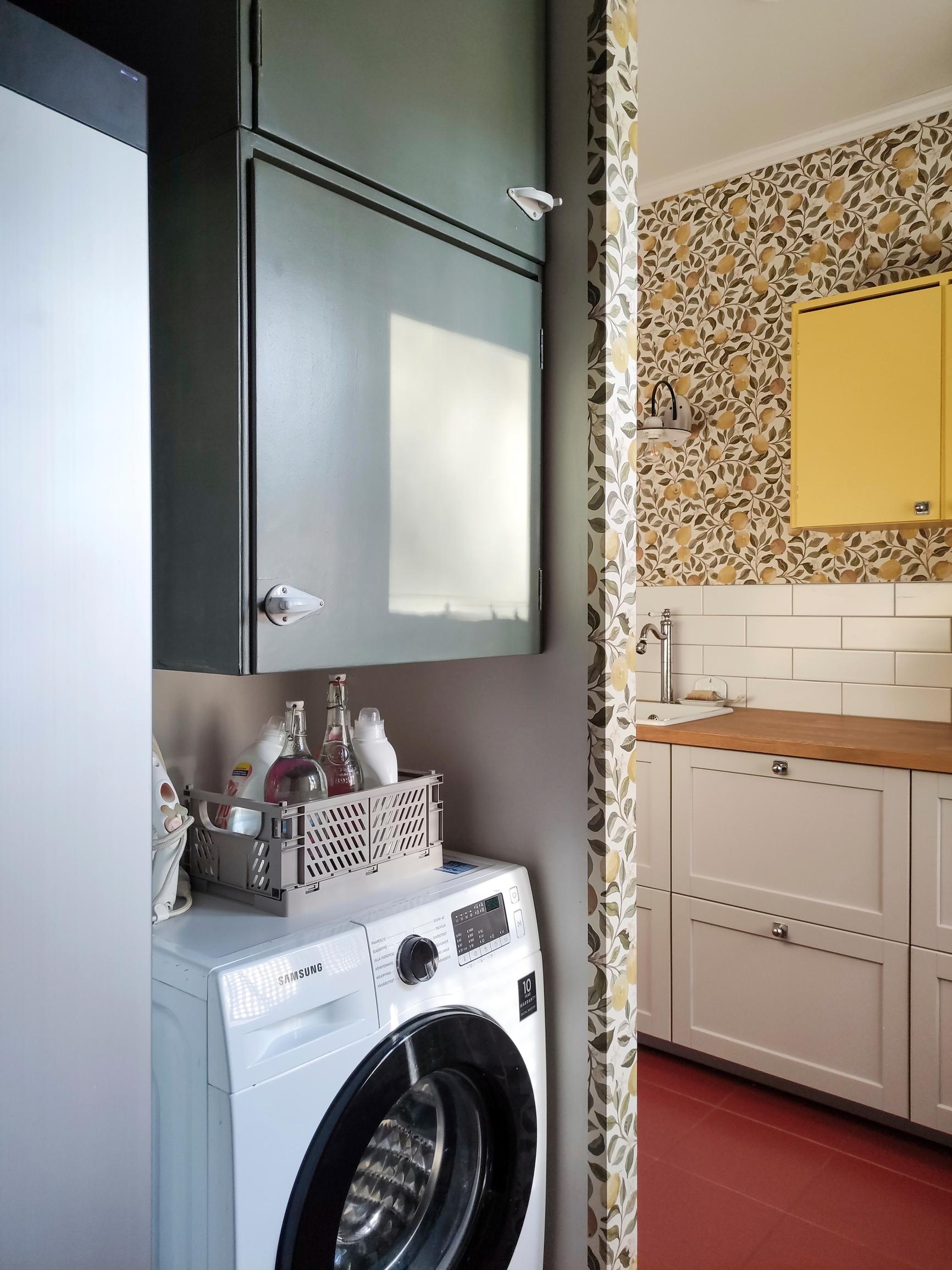 Farewell, neutrals! How Rilla’s 1950s cabinets and bold wallpaper transformed her laundry room