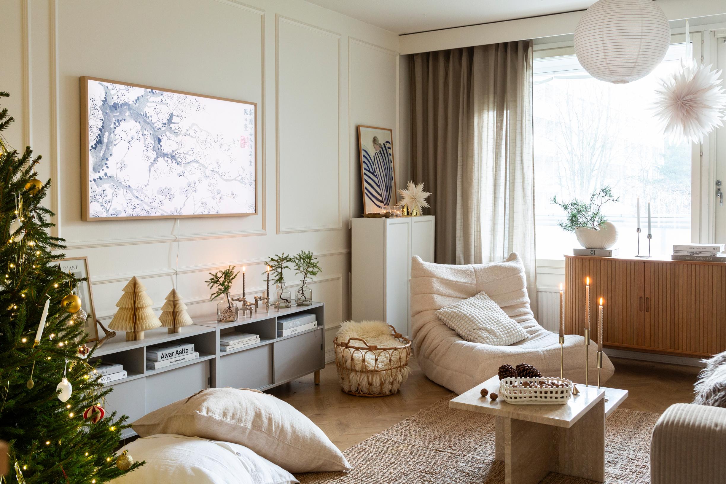 “For me, Christmas isn’t just about Christmas Eve; it’s the entire long, atmospheric wait.” Anu decorates her family’s three-room rental apartment in Turku in a Scandinavian minimalist style, and their Christmas begins in early November with Christmas songs on the radio.