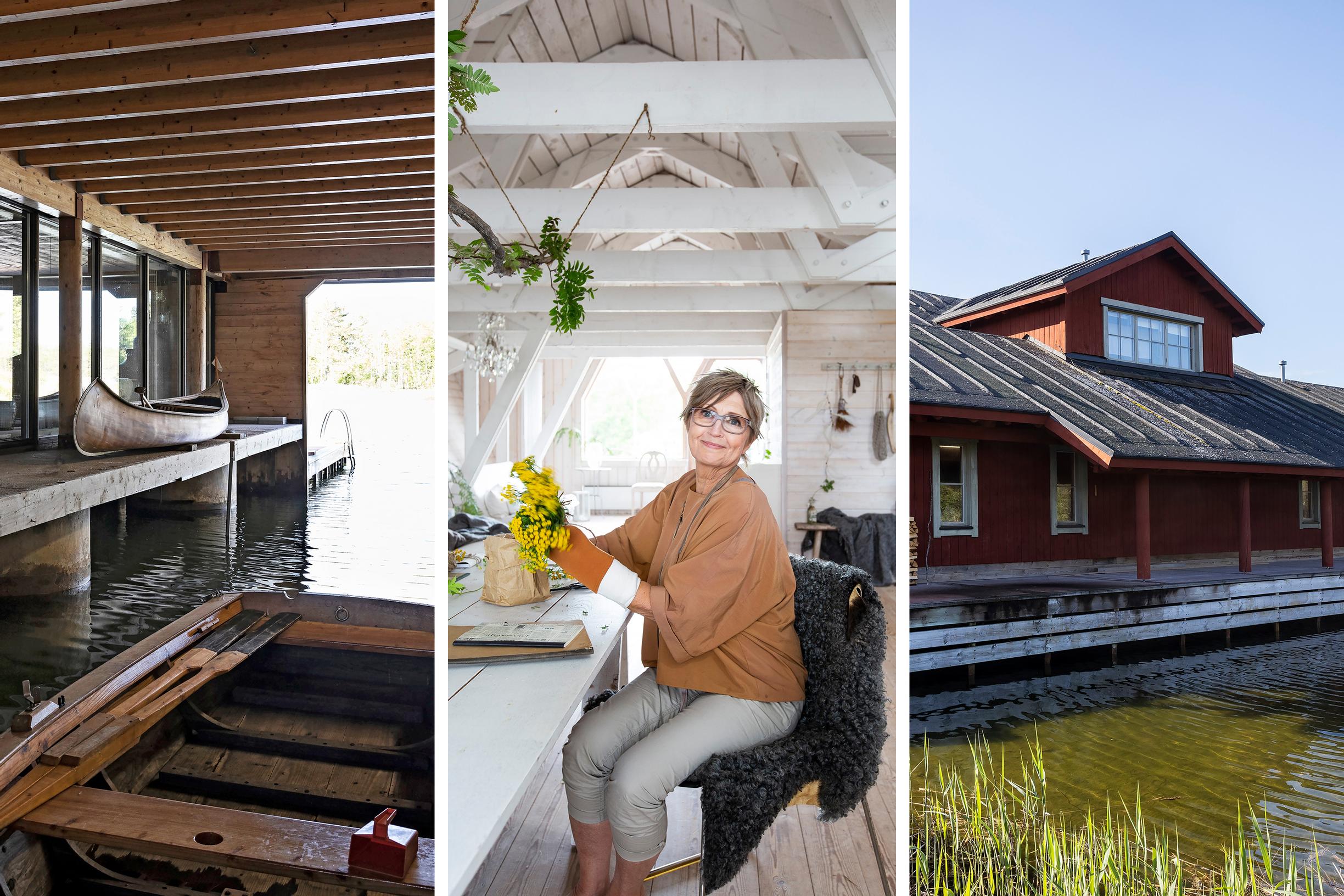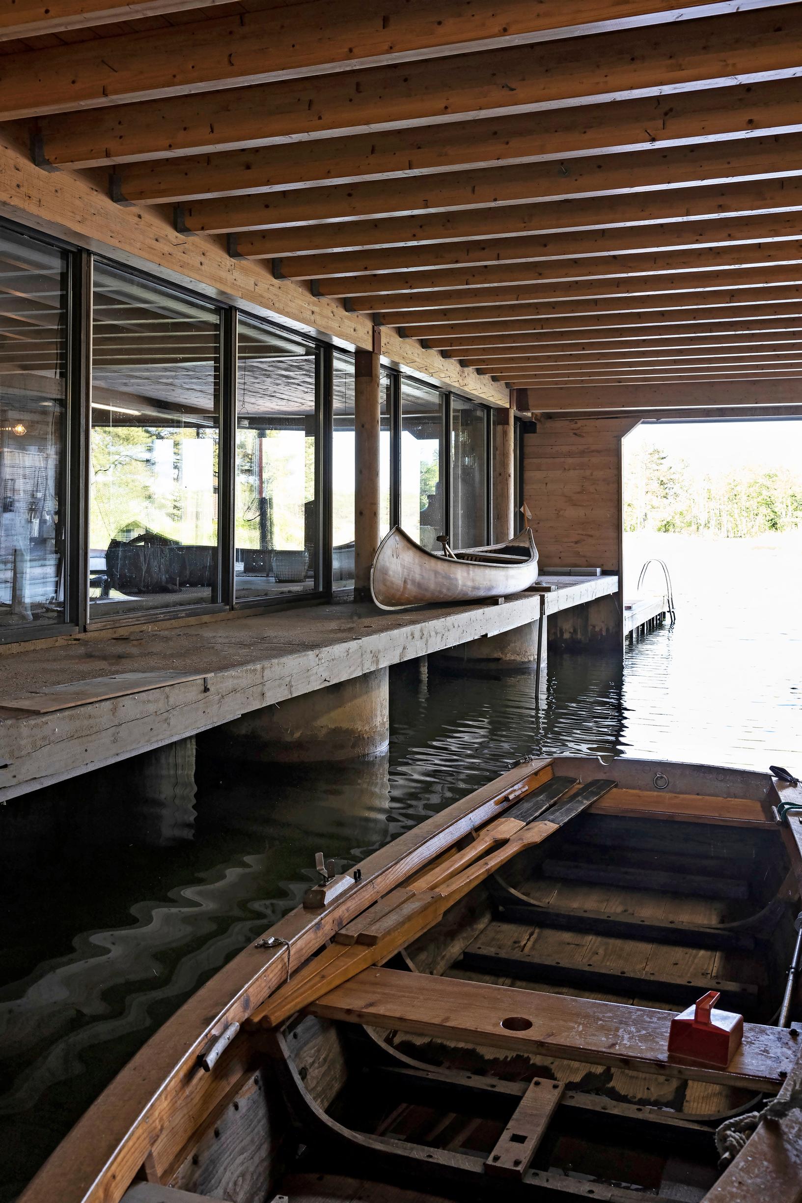 There, by the sea, stands a more than 400-square-meter boathouse painted in traditional red ocher. It is owned by Benita and Peo Björke, a pair of retired entrepreneurs in their seventies, and is a peculiar little world of their making. Benita Björke loves her canoe, which she received years ago as a birthday present from her husband. The canoe was acquired in Canada.