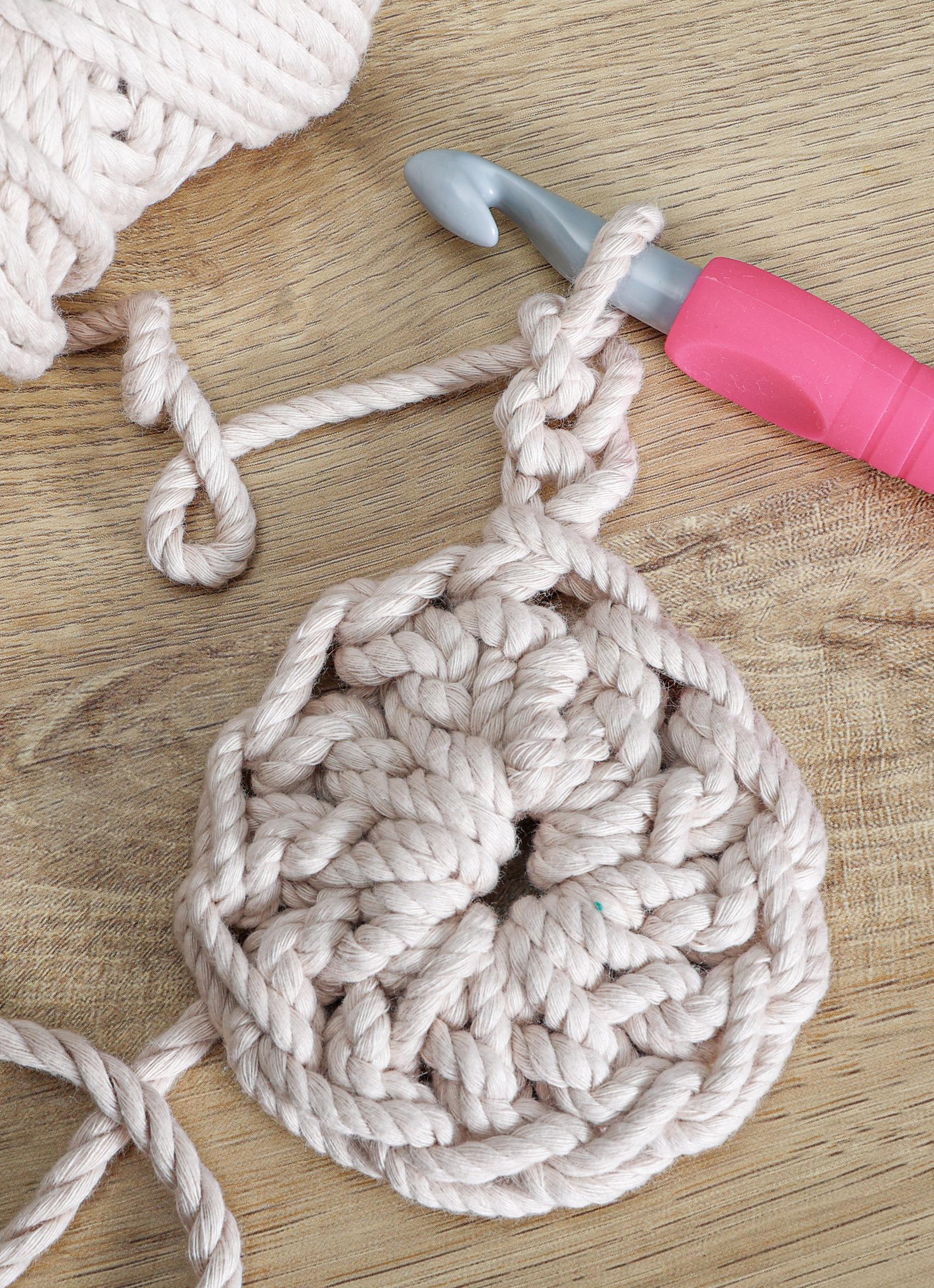 A small round rug fits any room—crochet this durable mat quickly with chunky yarn