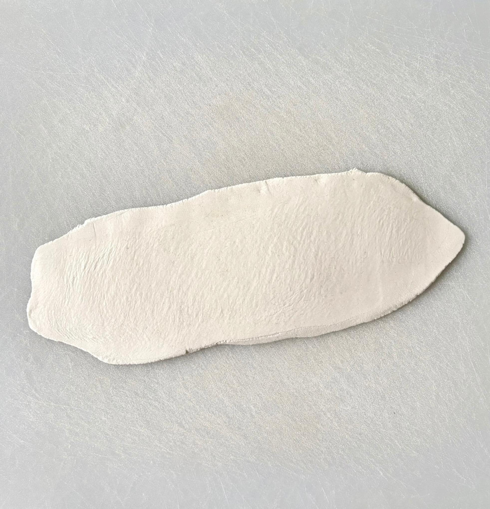 1. Cut a piece of clay about 5 cm (2″) wide and roll it out on your work surface into a sheet under 5 mm thick (around 3/16″).
