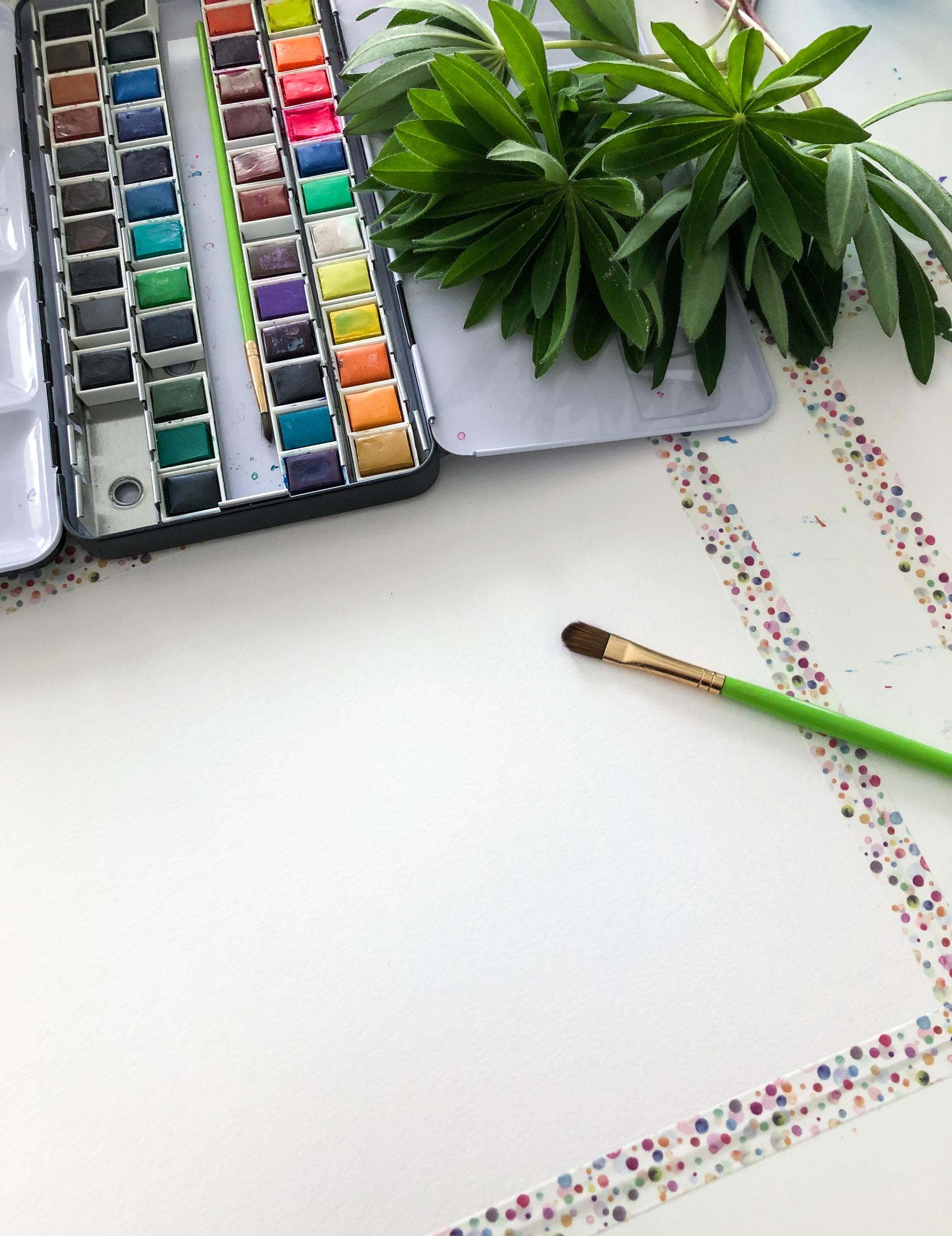 1. Attach the watercolor paper to your painting surface with masking or painter’s tape.
