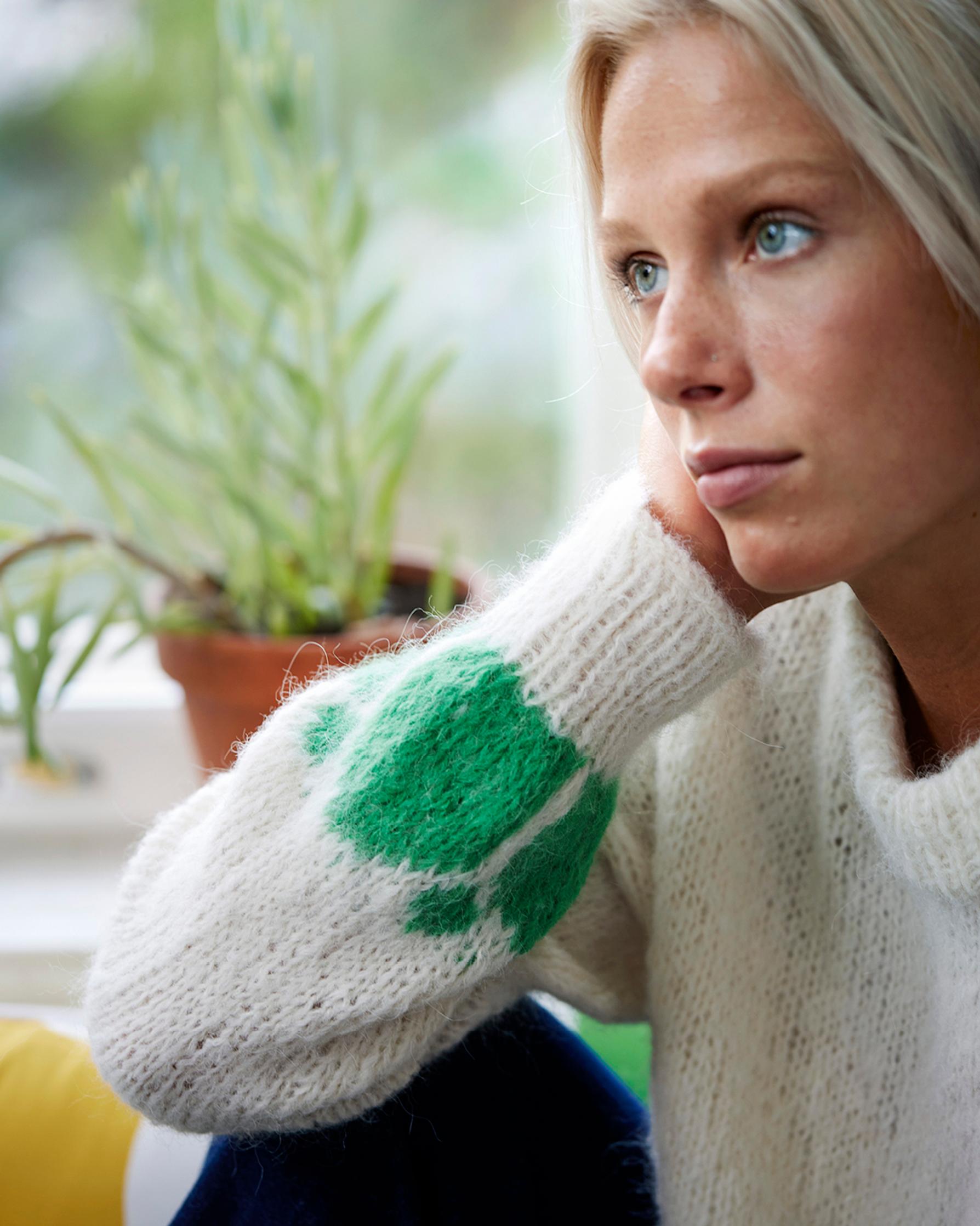 Knit the minimalistic Sunnuntaiaamu (“Sunday Morning”) sweater, perfect for a beginner colorwork knitter