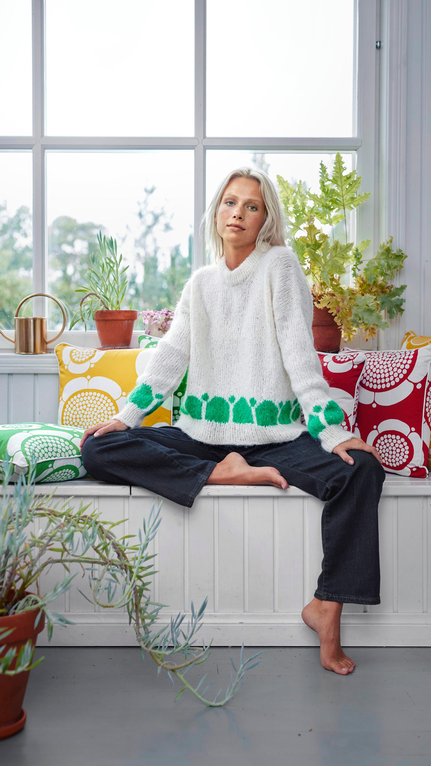 Sunnuntaiaamu is a classic design by the renowned ceramic artist Birger Kaipiainen, reimagined as a knit sweater by Paula Narkiniemi. The colorwork pattern is simple and approachable, making it an excellent choice for beginner knitters looking to explore stranded knitting.