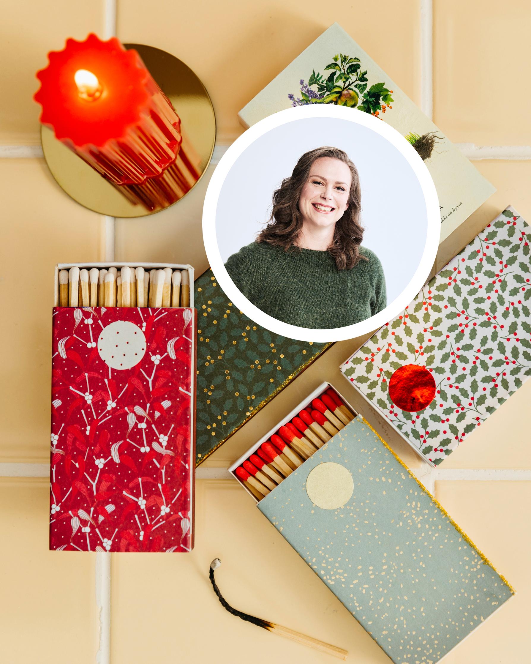 What gift can you bring for a child’s teacher or caregiver you don’t know very well? I fell for these customized matchboxes that our art director Elina Henttonen came up with and created the instructions for. Matches are always useful and fit the dark, candle-filled season.