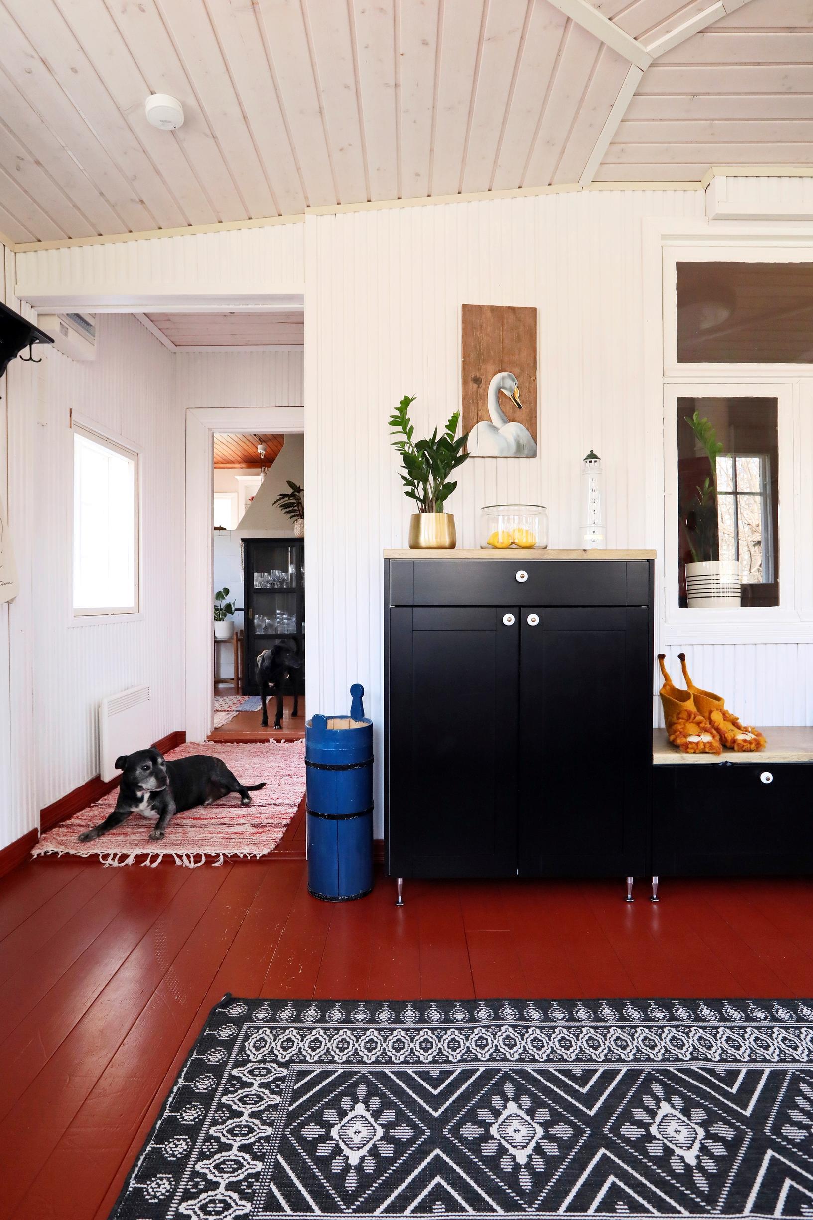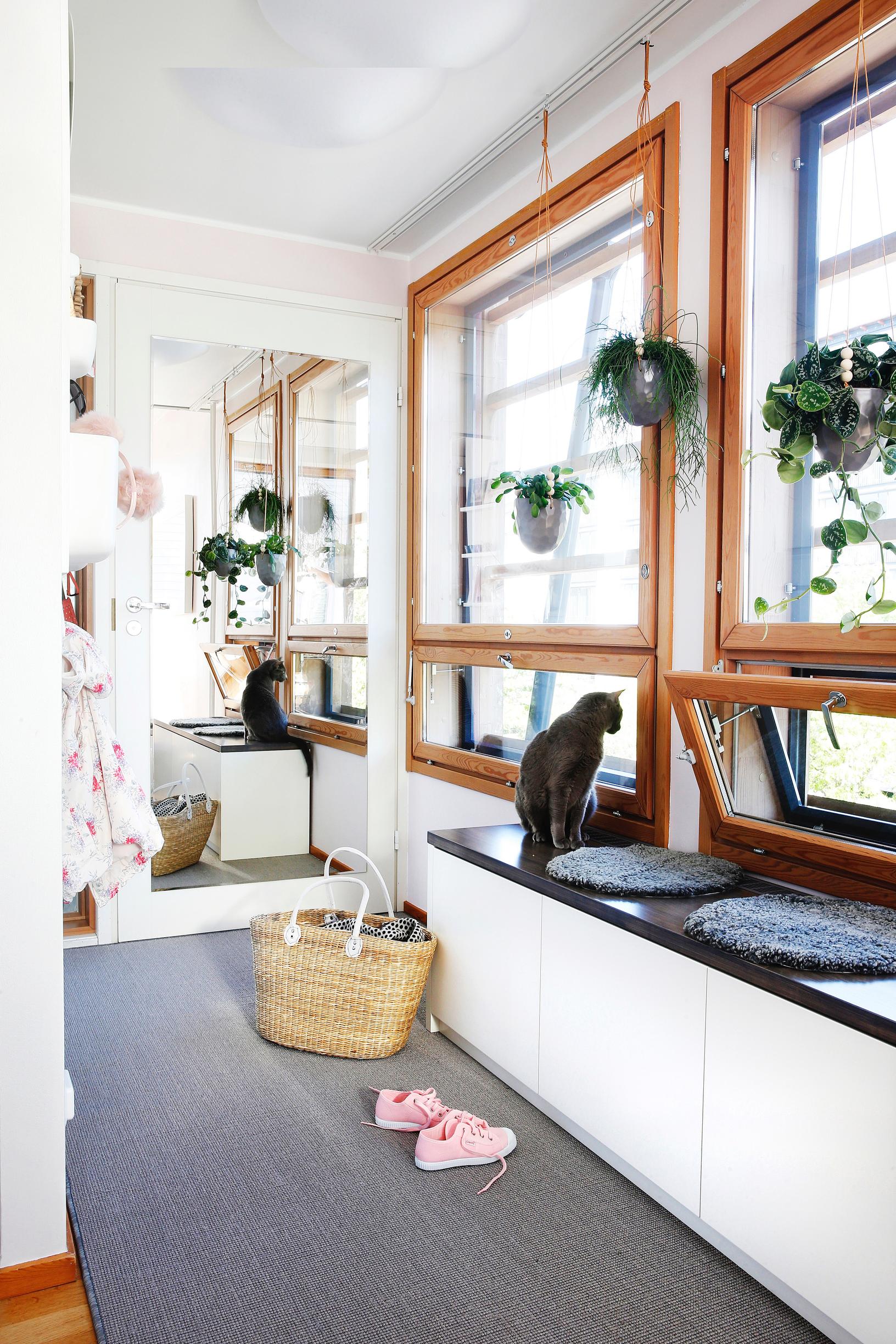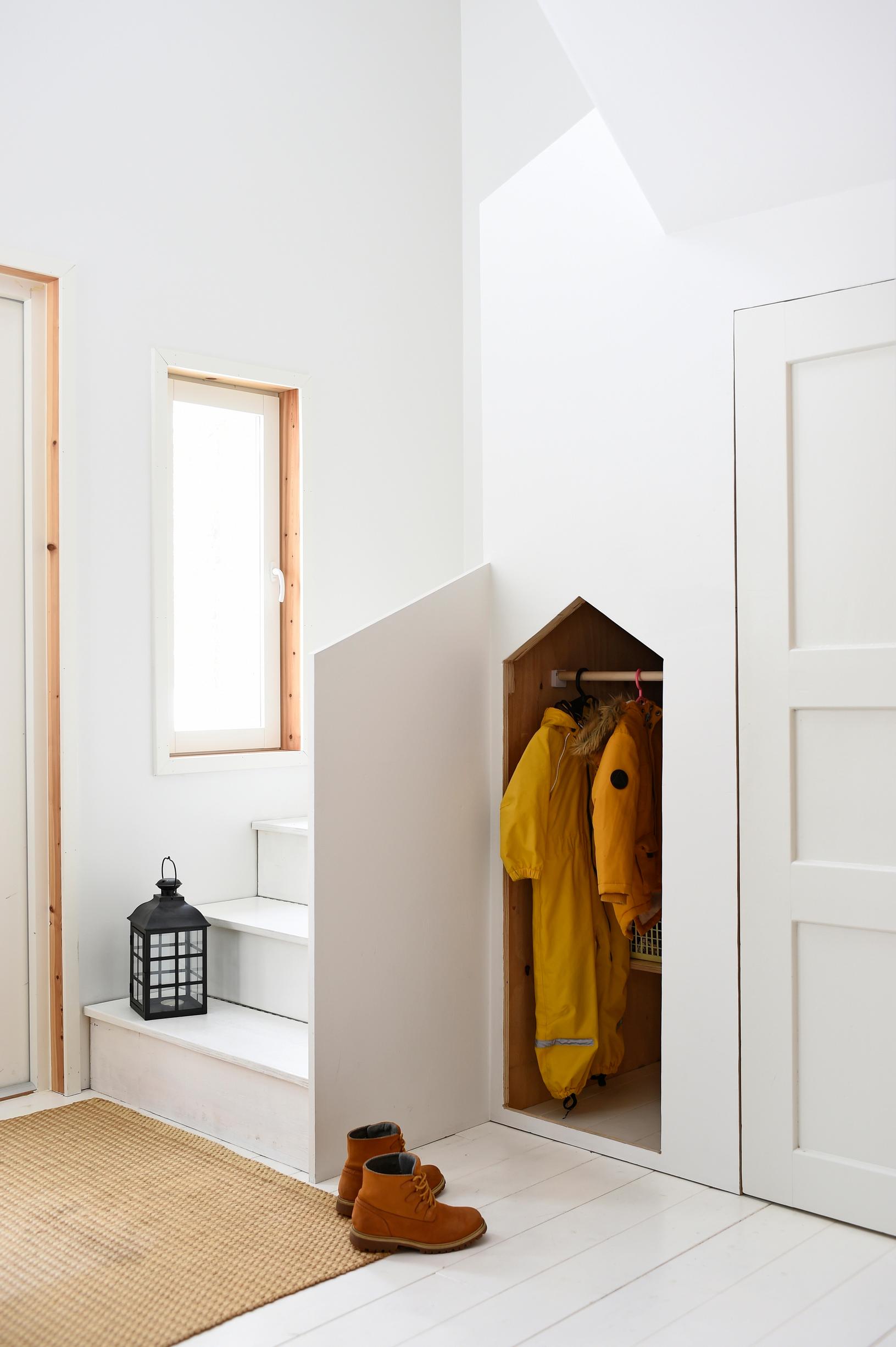 In the hallway, every corner counts. You’ll be surprised at how light even substantial storage solutions can look!