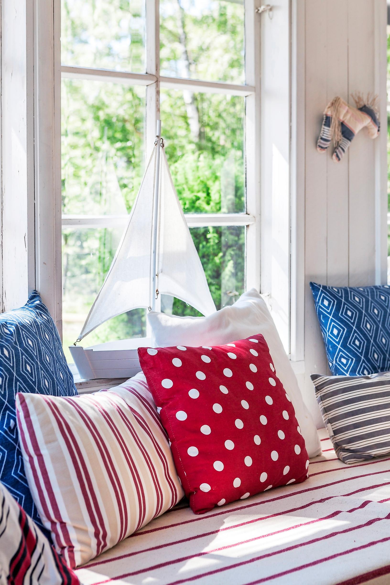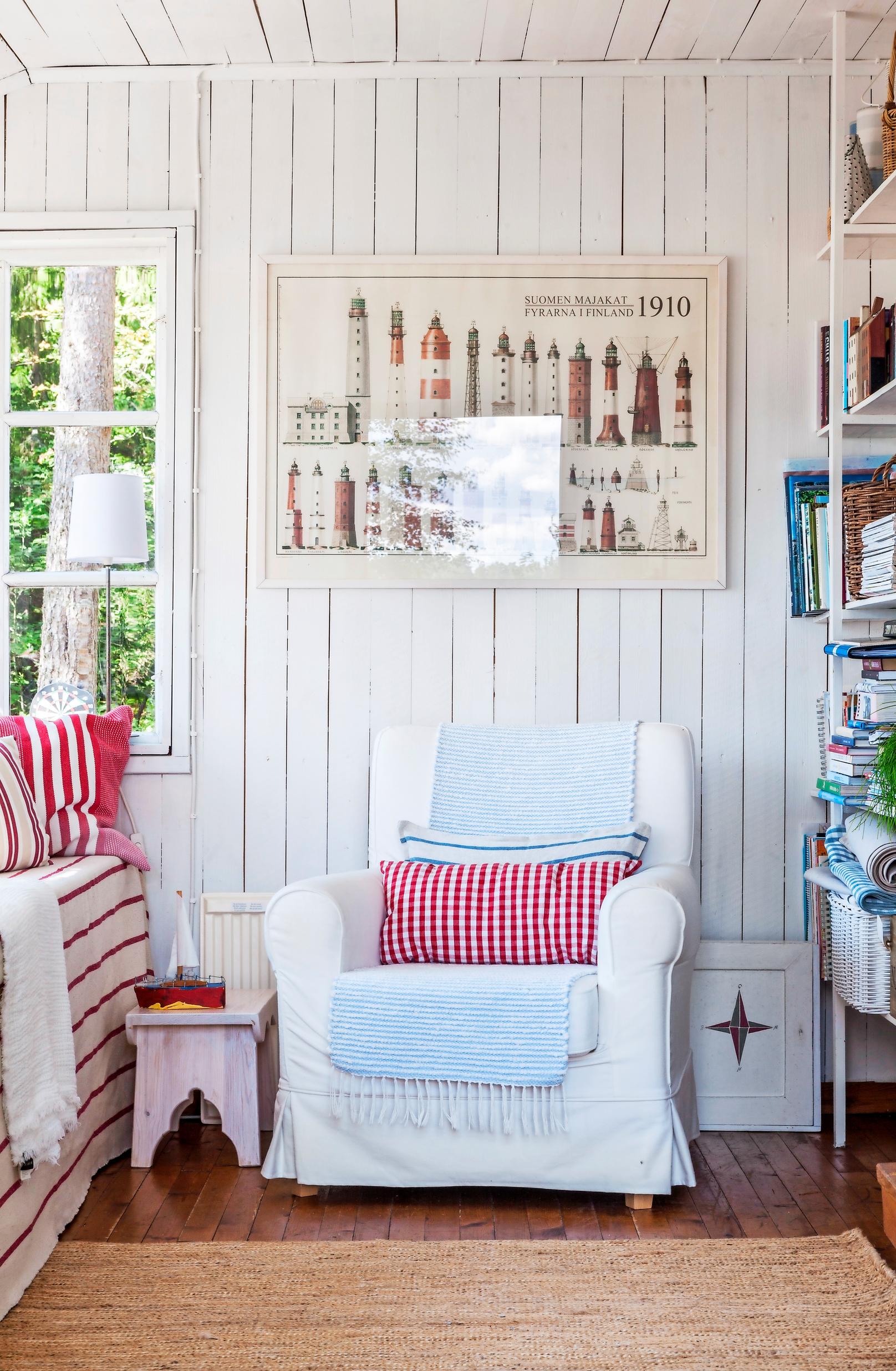 Blue, red, and white: a charming island cottage brimming with seaside atmosphere and family memories