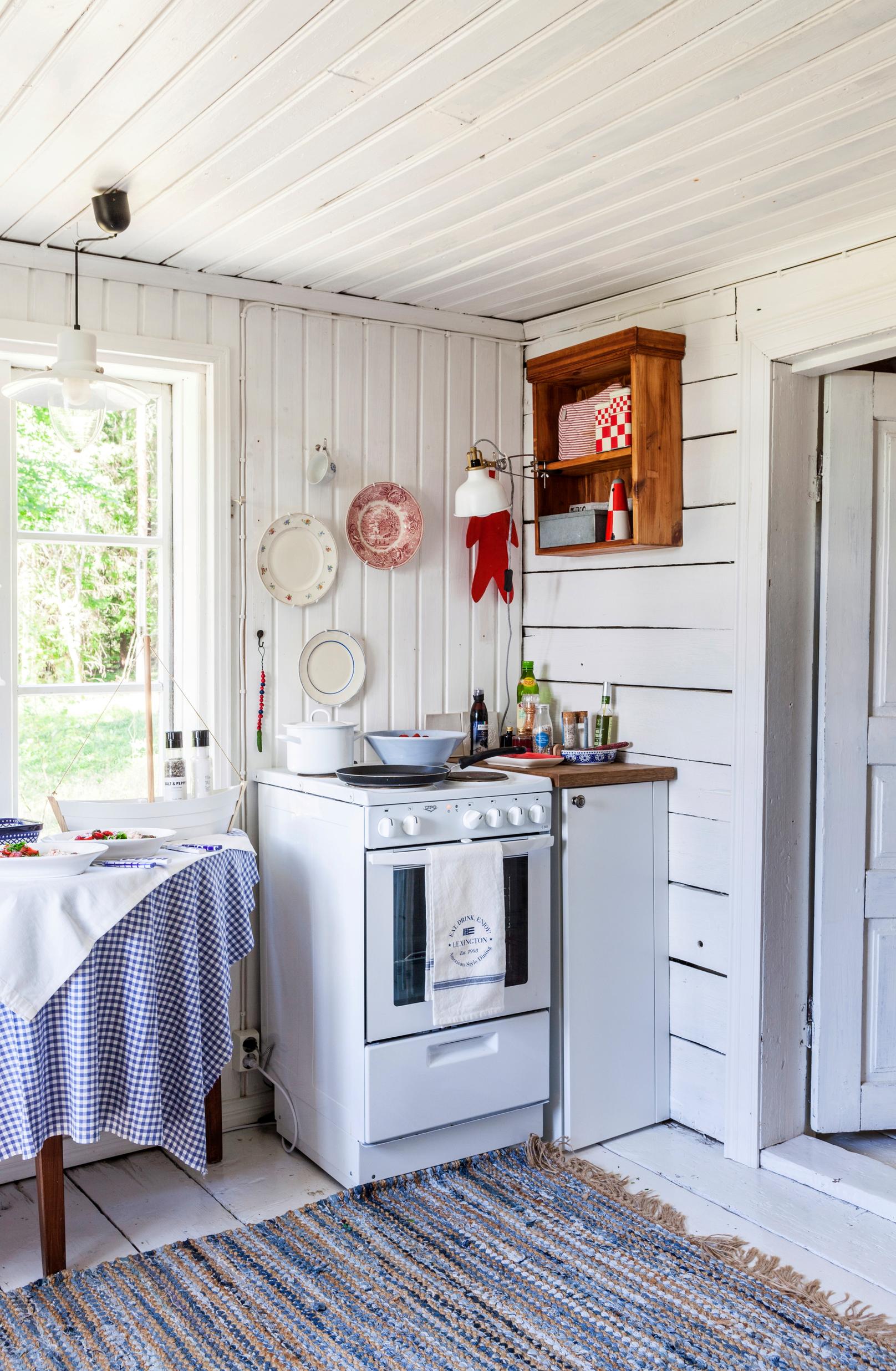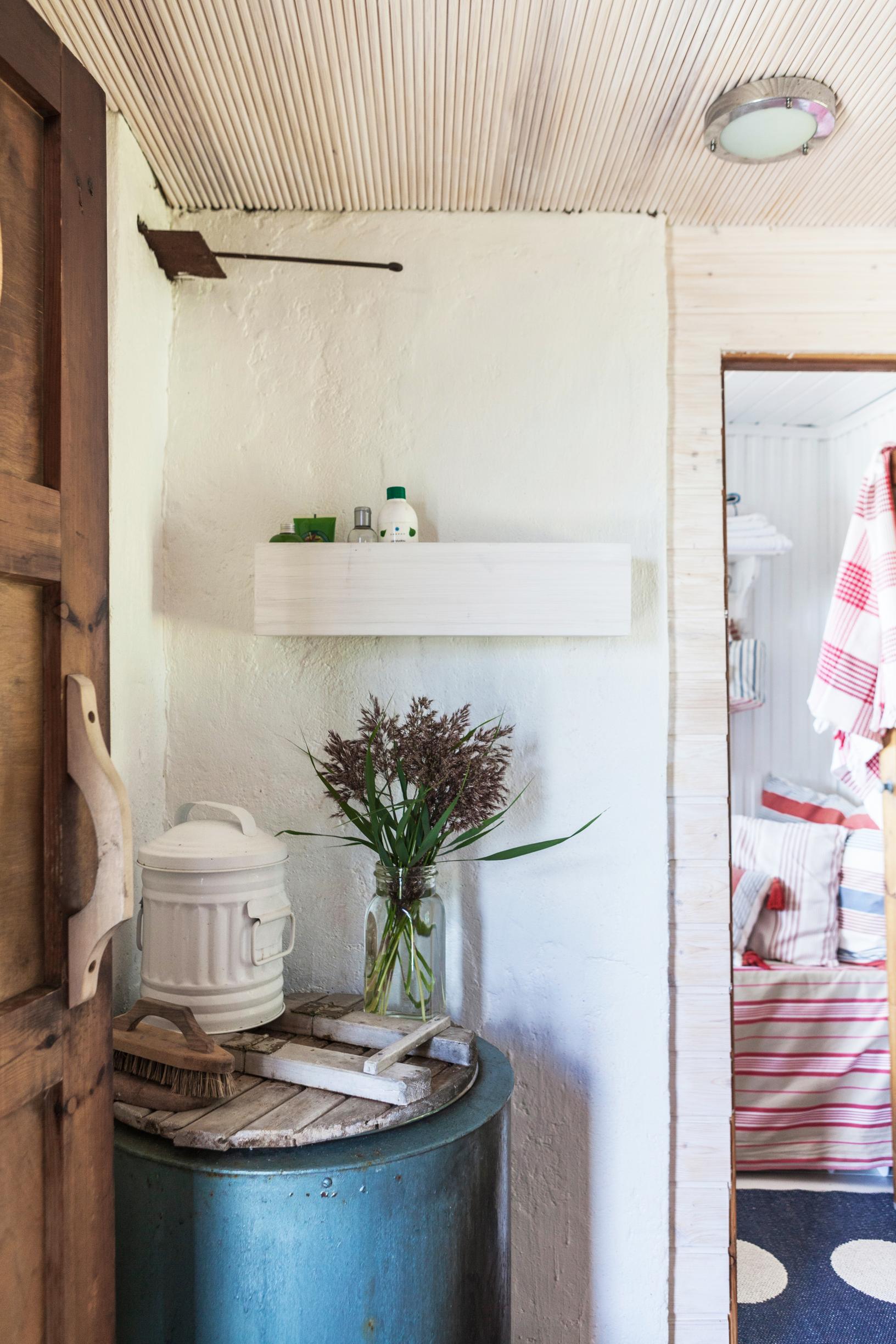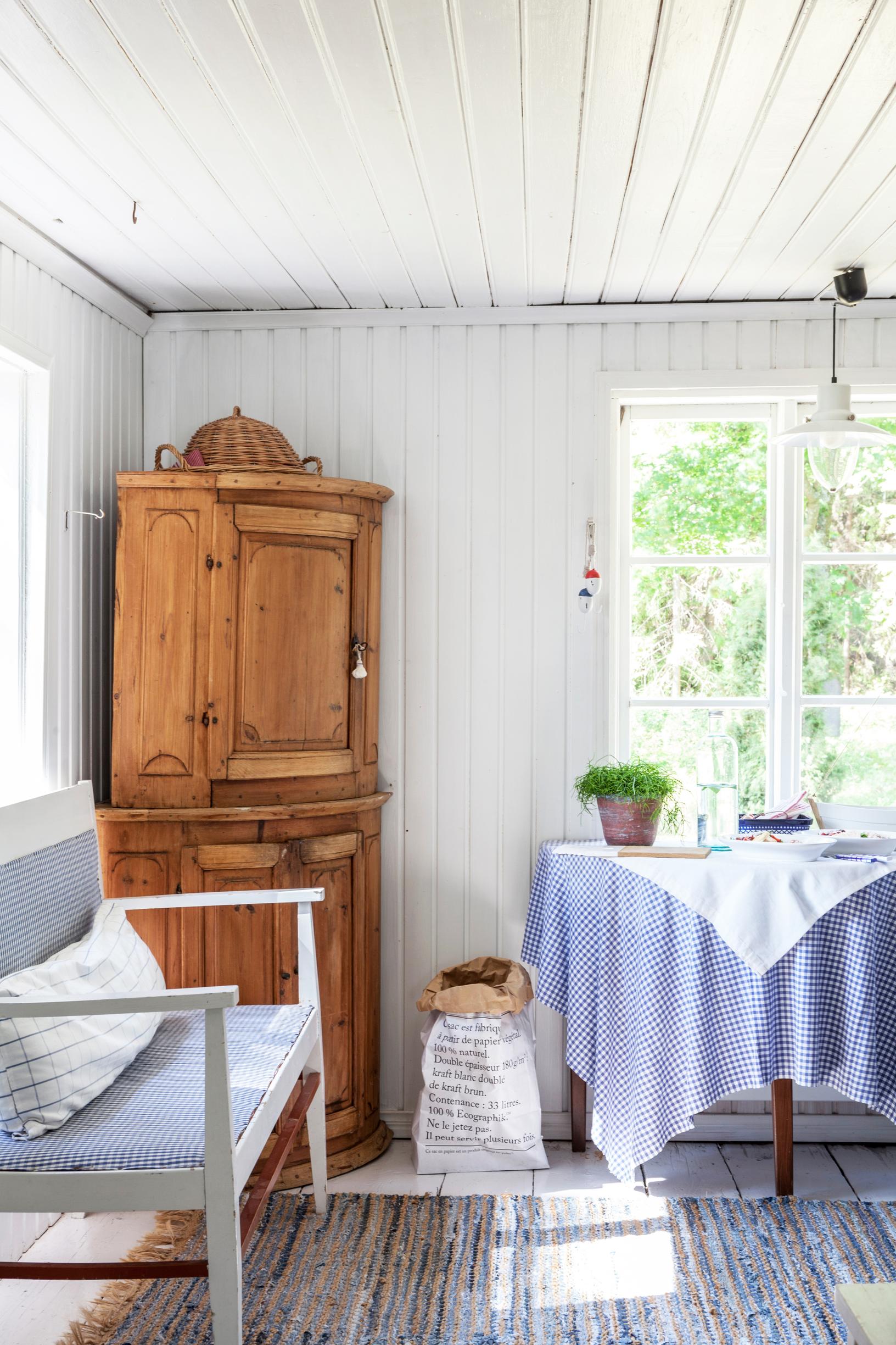 They used plenty of white paint that first summer, tearing out the old, musty board lining. Otherwise, the cottage has remained almost unchanged over the years. This continuity is important to Outi. Her work as an interior designer is fast-paced: clients change, trends come and go, and a color that’s fashionable now may soon be out of style. Family-related items bring stability, continuity, and peace to their leisure time.
