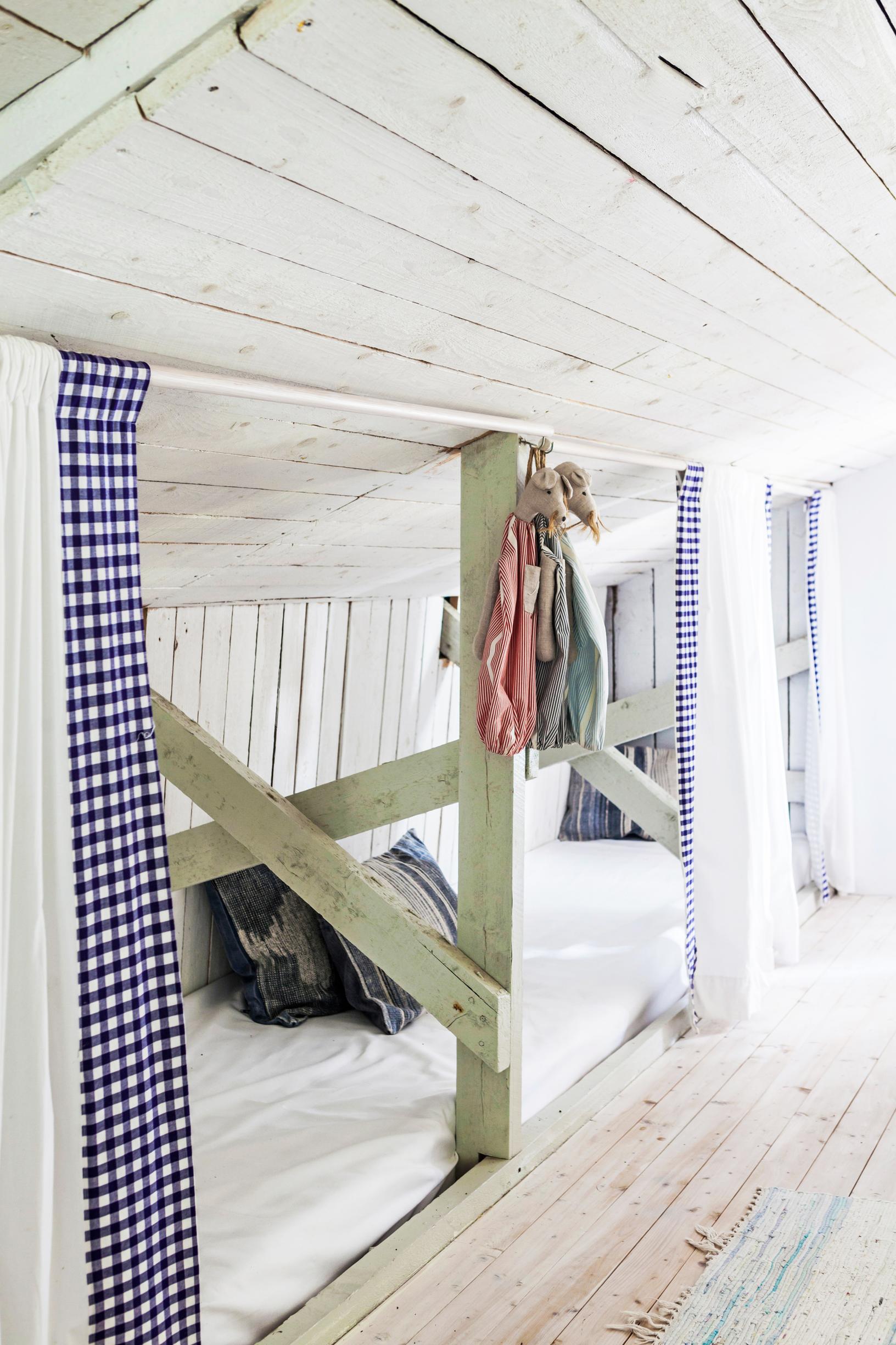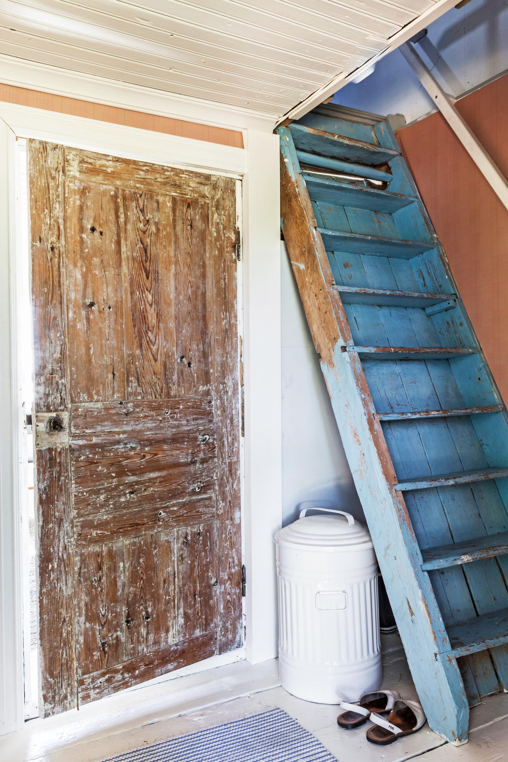 At the Tammi family’s island cottage, the attic stairs are never repainted because they hold the grandparents’ footprints and memories. Built in the 19th century, this former postmaster’s house was relocated to its current spot one log at a time.