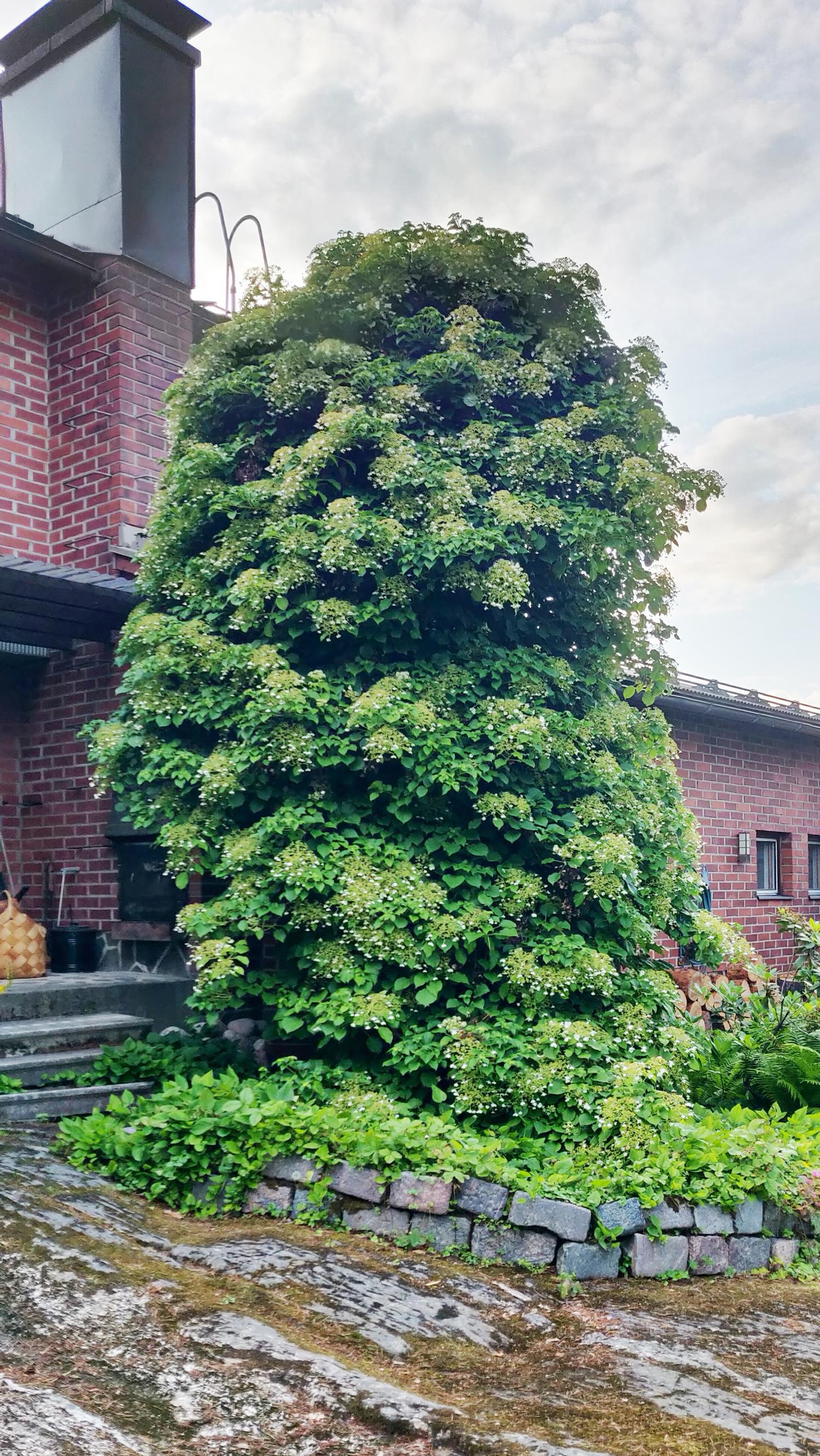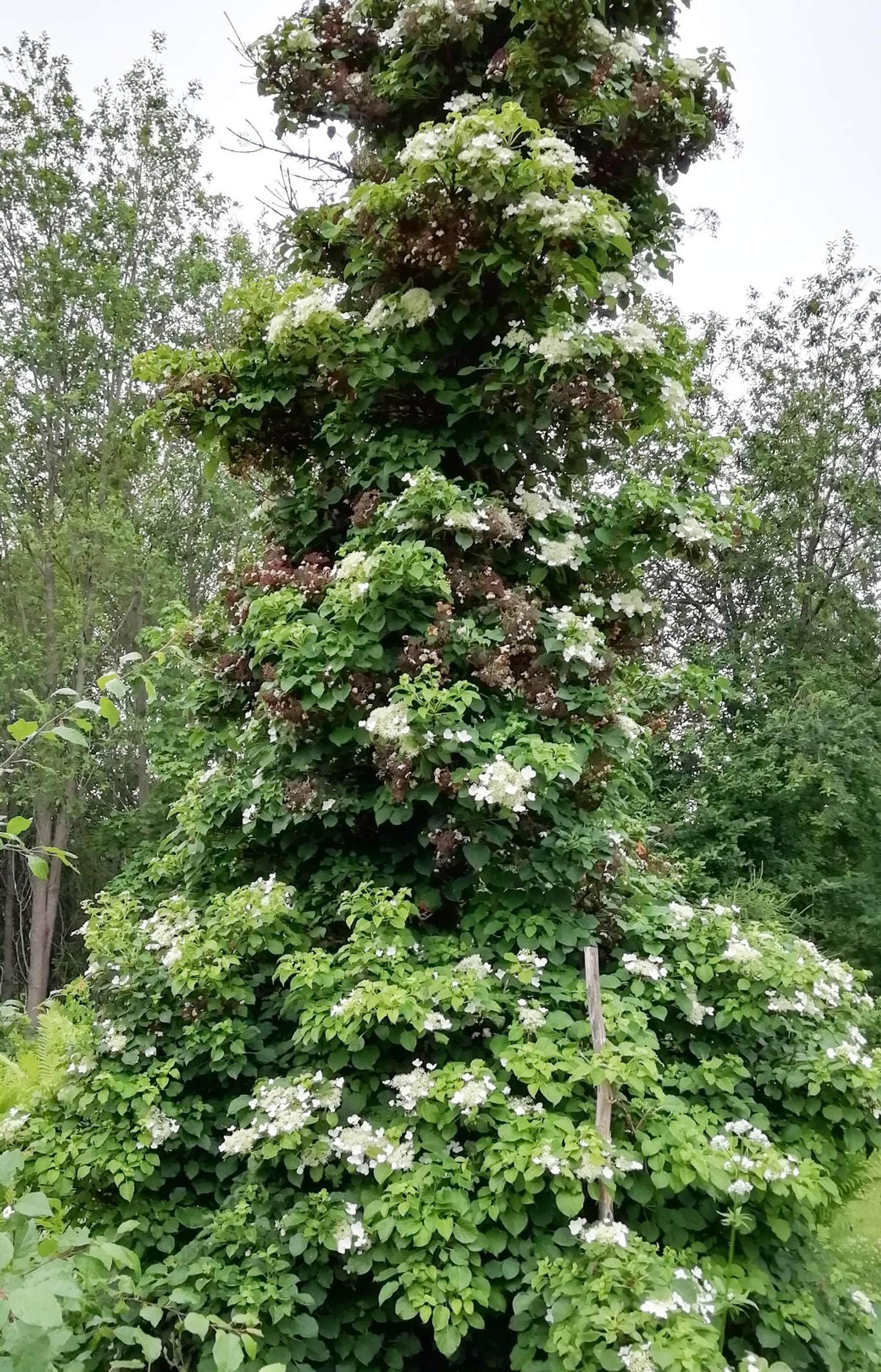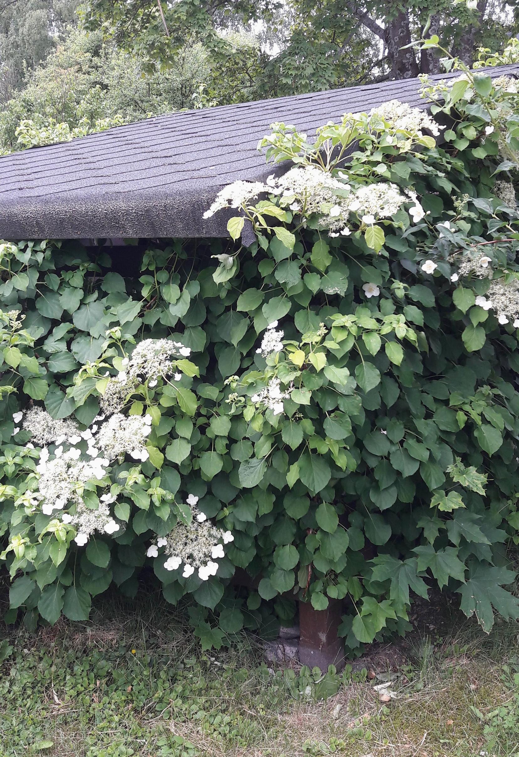 These wild climbing hydrangeas have a life of their own—and easily hide your trash or car shelter