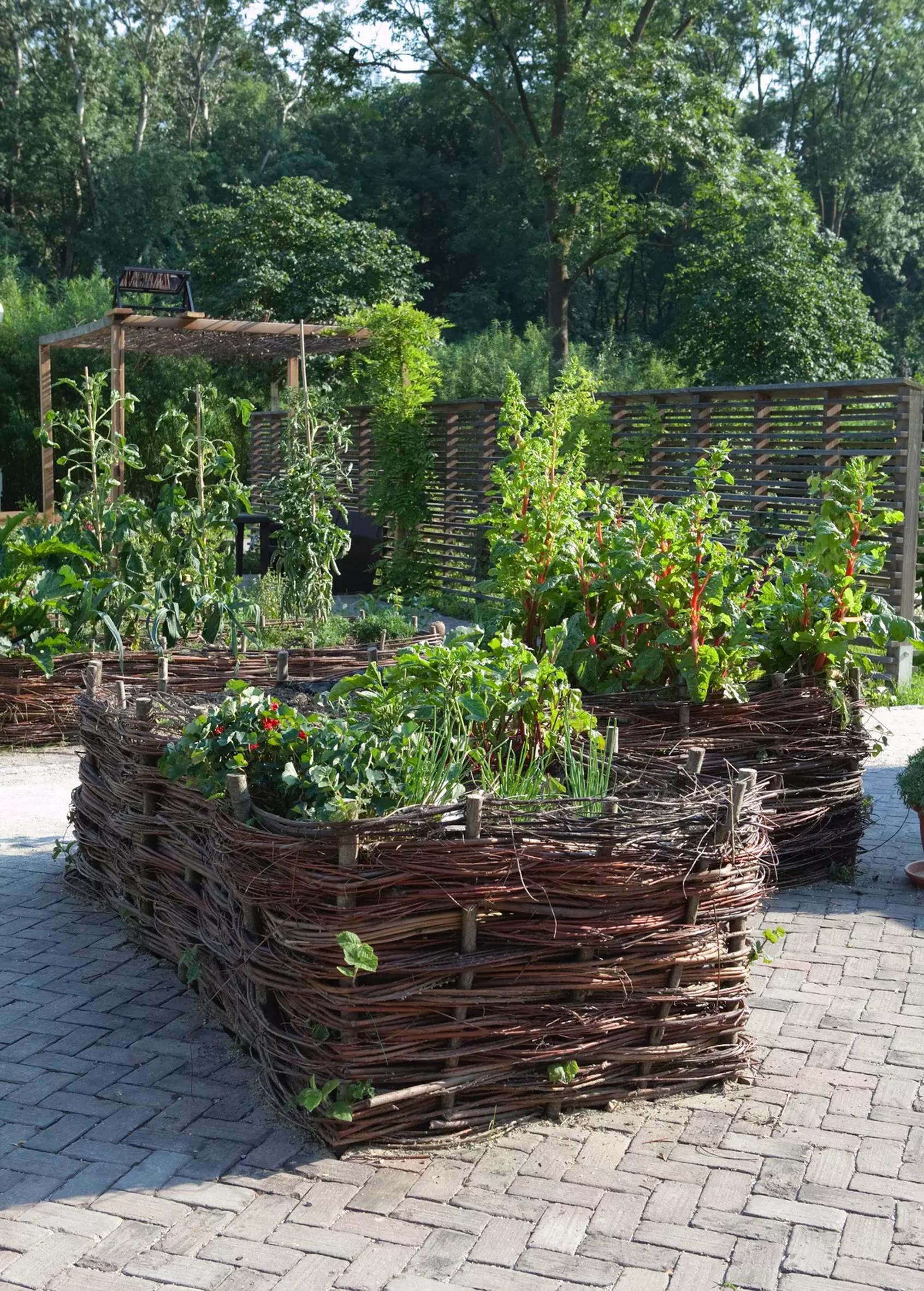 Flexible willow is excellent for weaving. Besides making flowerbed edges, you can also weave entire raised beds from willow.