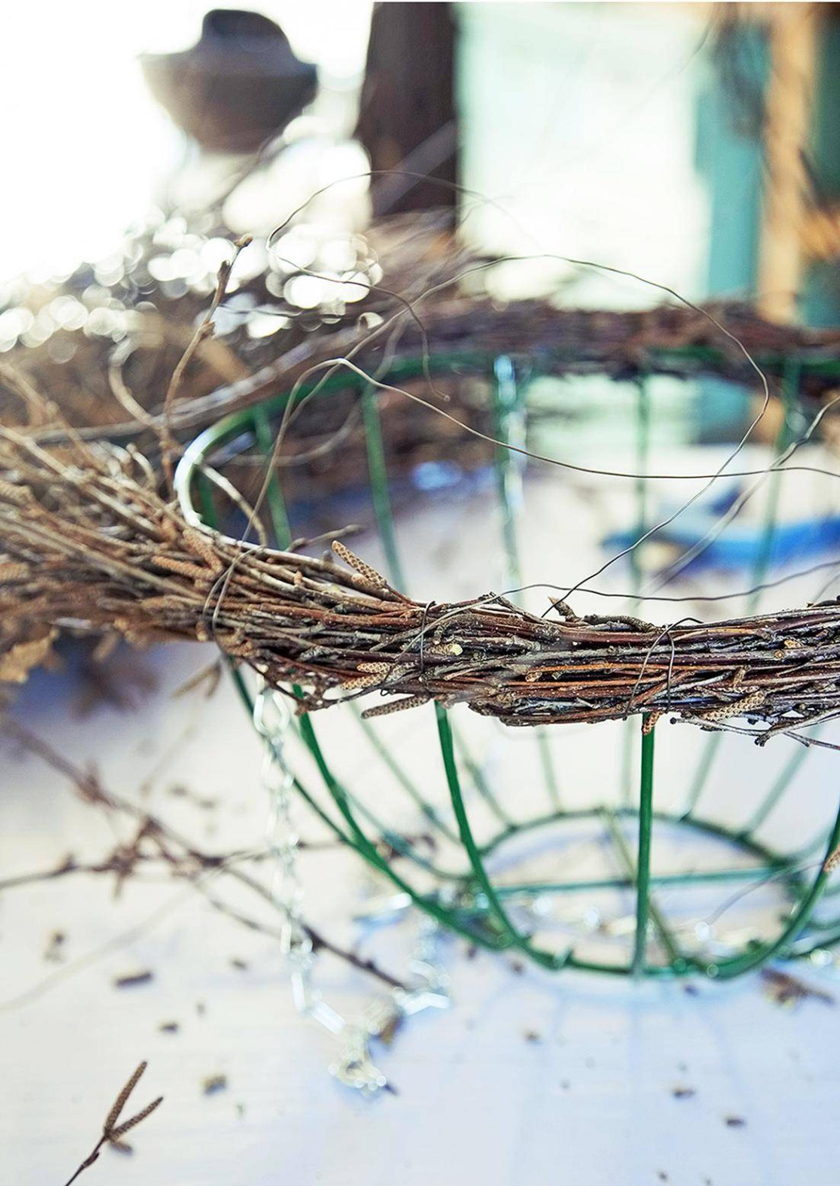 Small twigs are great for making a hanging basket. All you need is a frame. You’ll find detailed instructions for making the basket in this article [in Finnish].