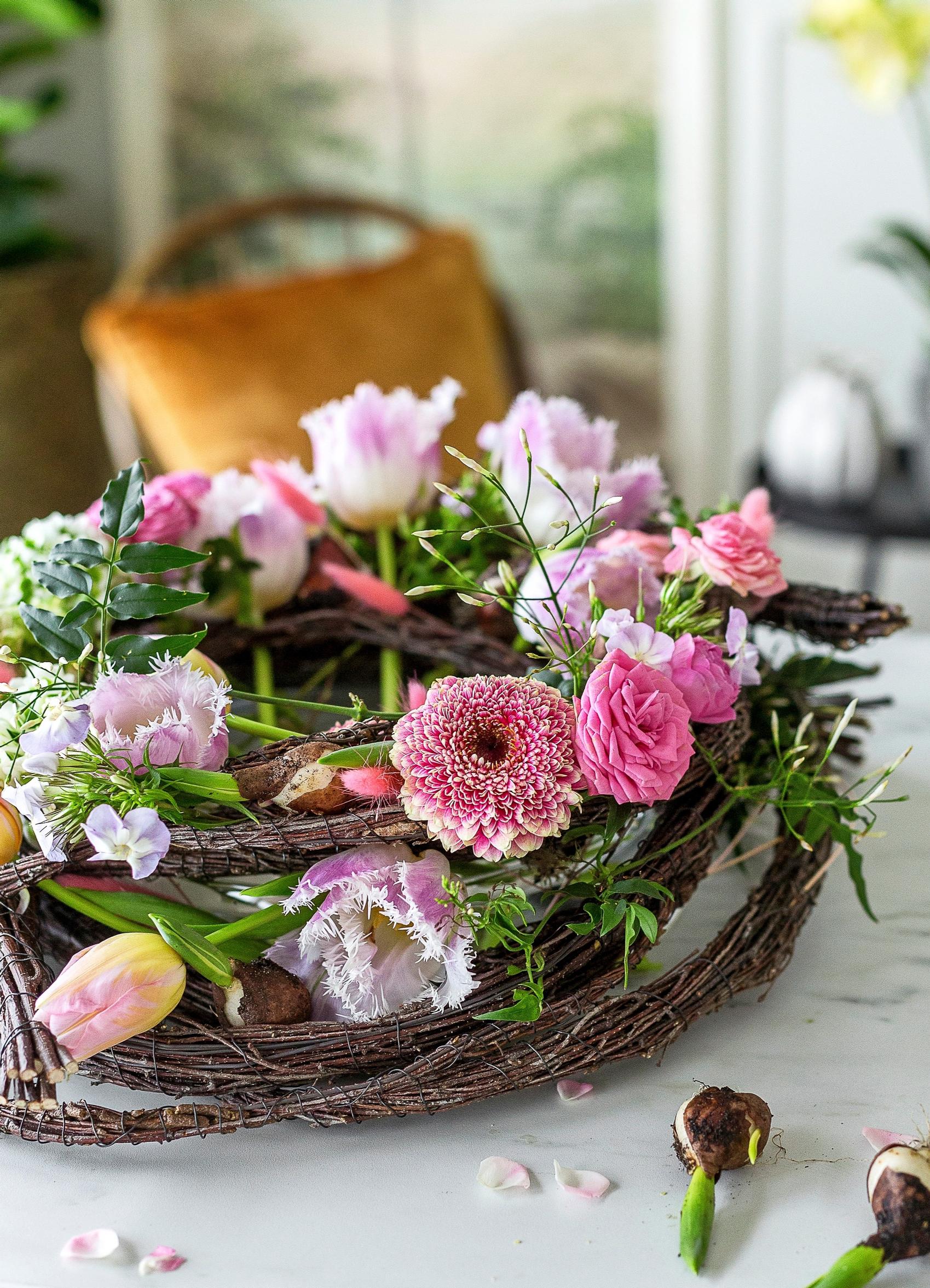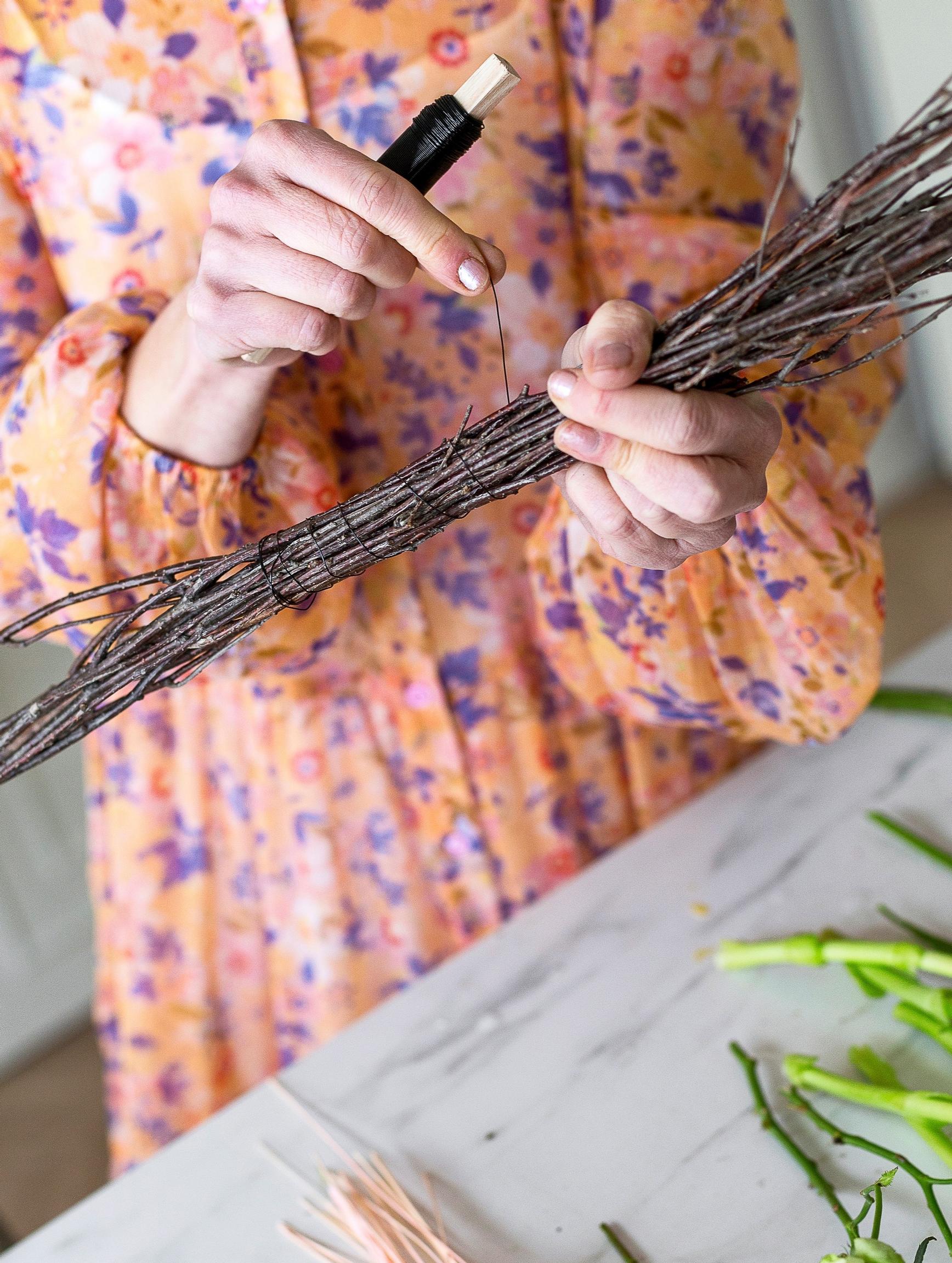 Besides traditional wreath bases, you can also craft a striking table wreath from thin branches of a tree or shrub. Master florist Saija Sitolahti shows you how to tie a fresh spring table decoration with ease!